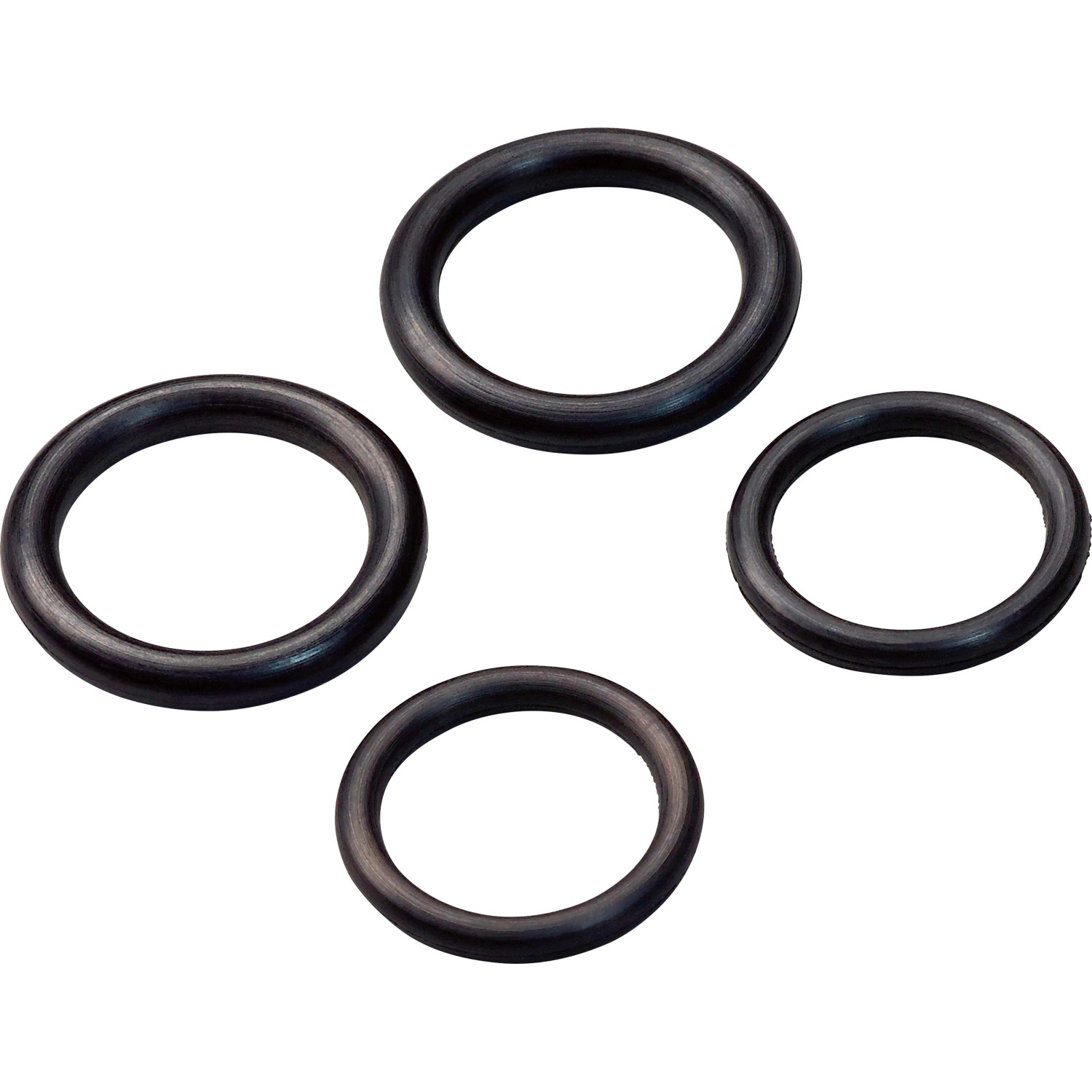 Das Dichtungs-Set ist ein 4-teiliges Set aus unterschiedlichen O-Ringen. Sie werden beispielsweise zum zuverlässigen Abdichten von Armaturgewinden genutzt. Im Set enthalten sind zwei Ringe mit einem Durchmesser von 12 mm und einer Schnurstärke von 2 mm sowie zwei Ringe mit einem Durchmesser von 13,6 mm und einer Schnurstärke von 2,7 mm. Die Dichtungen sind aus schwarzem Gummi gefertigt und trinkwassergeeignet.