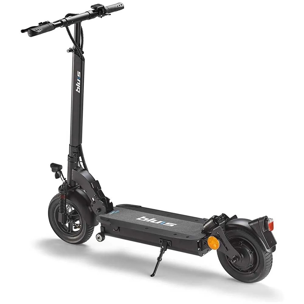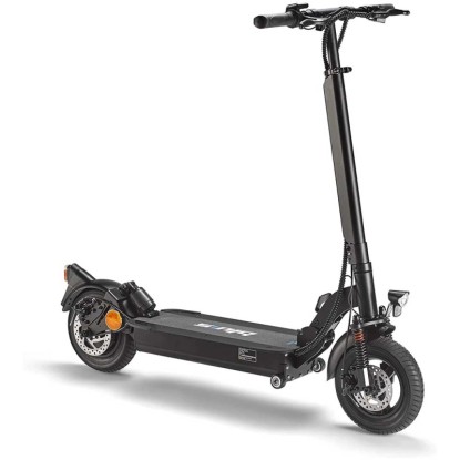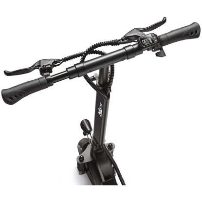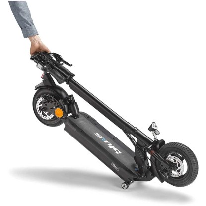 Das breite Trittbrett sorgt für eine entspannte und sichere Fahrposition und die grossen 10"-Luftreifen sowie die umfangreiche Federung an Vorder- und Hinterrad ermöglichen einen hohen Fahrkomfort auch auf unebenem Gelände. Neben dem Fahrkomfort ist vor allem die technische Ausstattung des E-Scooters hervorzuheben. Der 350 W starke Hinterradmotor sorgt in Verbindung mit der 13-Ah-Lithium-Batterie für eine maximale Reichweite von 50 km. Während der Fahrt versorgt Sie ein LCD-Display mit allen wichtigen Informationen. Im Vergleich zu vielen anderen Modellen überzeugt der Stalky XT950 auch mit seiner kompletten Faltbarkeit. So können Sie neben der klappbaren und höhenverstellbaren Lenkstange auch die Griffe einklappen. Dank dieser Kompaktheit und dem geringen Gewicht von ca. 20 kg können Sie den E-Scooter bequem überall mit hinnehmen.