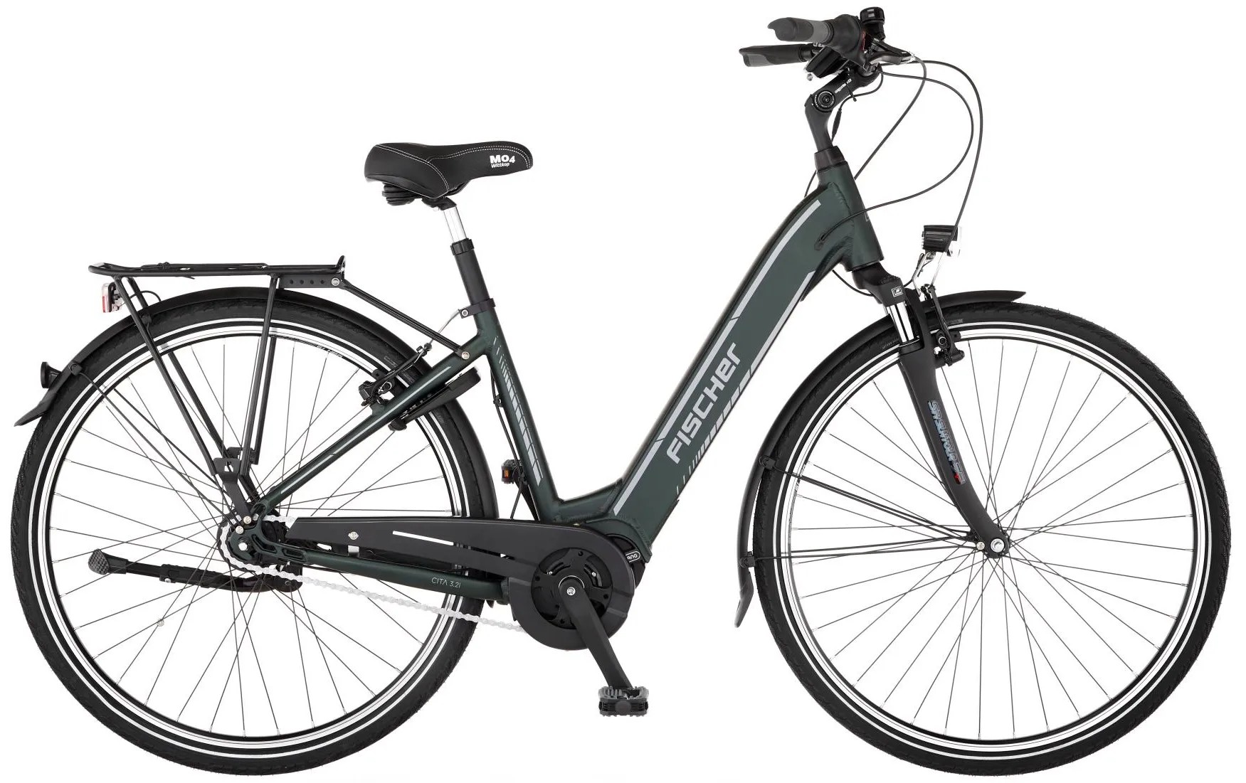 Zügig, aber bequem ans Ziel: Das Tiefeinsteiger Fischer City-E-Bike Cita 3.2i ist mit modernem Mittelmotor und vollintegriertem 418-Wh-Akku ausgestattet. Der sportliche Mittelmotor fährt sich angenehm leicht und flüsterleise. Der tiefe Einstieg und die gefederte Sattelstütze bieten angenehmen Fahrkomfort. Mit der Fischer E-Connect-App macht das Radfahren noch mehr Spass.
