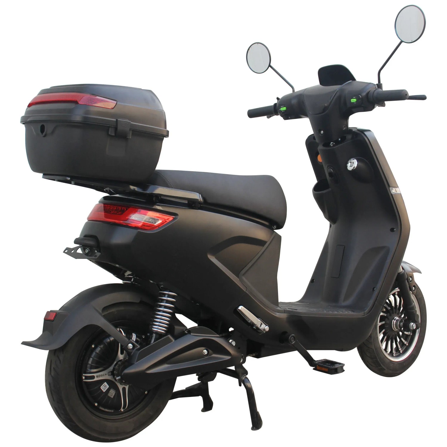 Der EM38 von Gen2 verfügt über eine leistungsstarke 48V/24 Ah Lithium-Ionen-Batterie, mit welcher Reichweiten von 50-70 km erreicht werden können. Die Batterie kann herausgenommen und an jeder Haushaltssteckdose geladen werden. Ein besonderes Highlight ist der kabellose Bluetooth-Lautsprecher, der während der Fahrt für musikalische Unterhaltung sorgt. Angetrieben wird der EM 38 von einem wartungsarmen, bürstenlosen Bosch-Qualitätsmotor mit 500 W, der für eine kraftvolle Beschleunigung sorgt. Für maximale Sicherheit ist der Scooter mit Scheibenbremsen sowohl vorne als auch hinten ausgestattet, die eine hervorragende Bremsleistung gewährleisten.Der E-Scooter Gen2 EM 38 darf ab 16 Jahren ohne Führerschein gefahren werden. Ab 14 Jahren wird der Mofa-Ausweis benötigt.