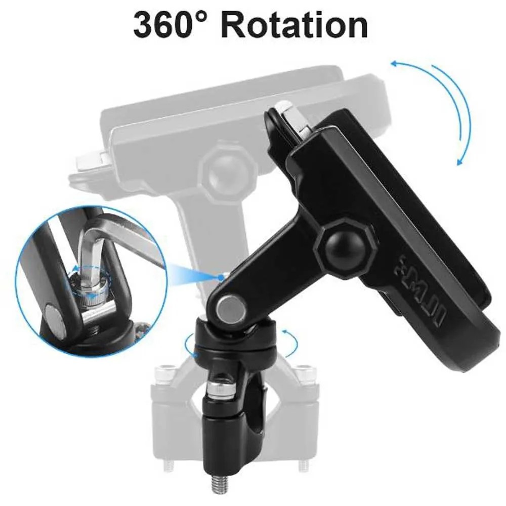 Die robuste und hochwertige Handyhalterung aus Aluminium garantiert dank einem ausgeklügelten Schraubsystem einen festen Sitz. Sie eignet sich für Roller, Fahrräder und E-Bikes. Die um 360° schwenkbare Halterung ist mit wenigen Handgriffen montiert, stufenlos verstellbar und kompatibel mit allen gängigen Smartphones.