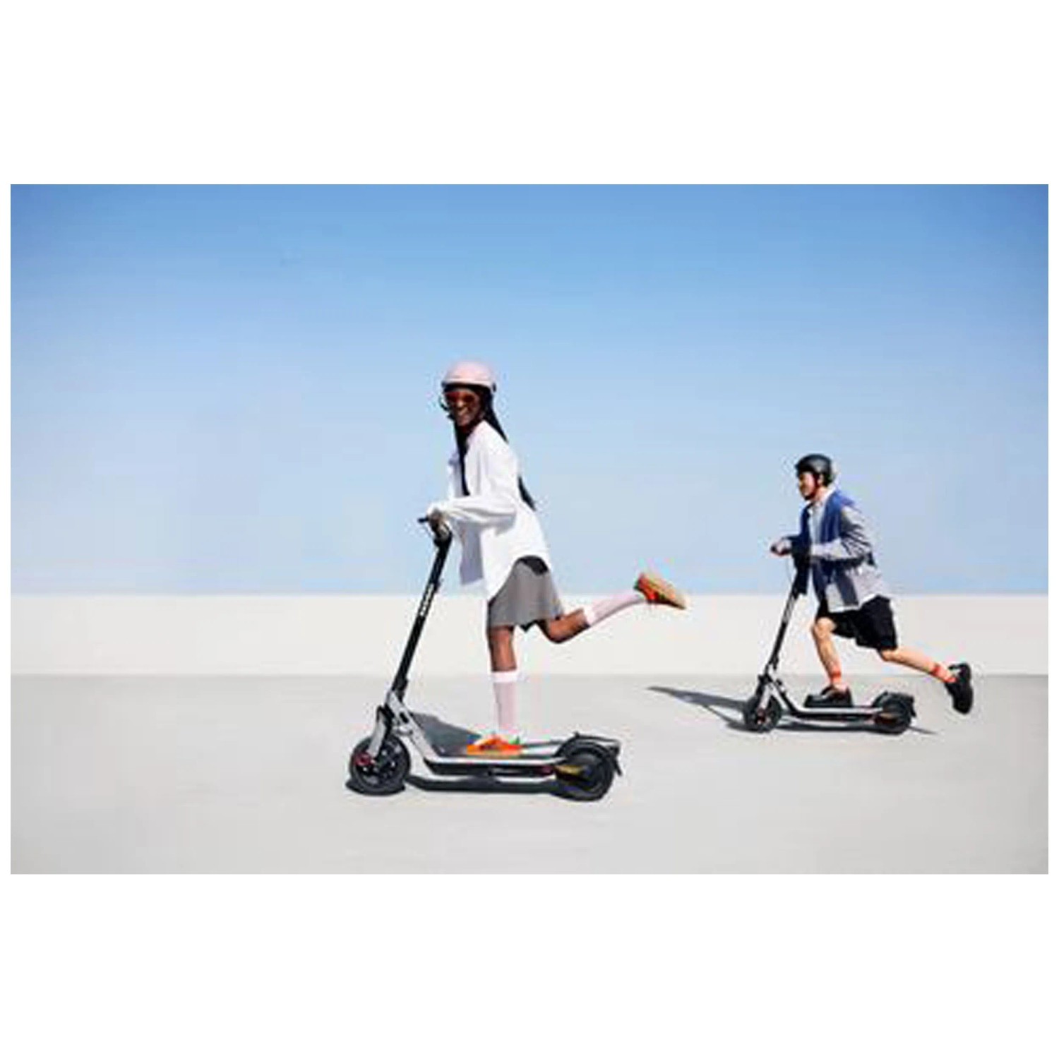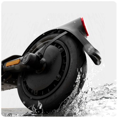 Dank dualer Elastomer-Federung vorne und hinten fährt sich der E-Scooter auch auf unebenem Untergrund komfortabel und stabil, während das SegRide-Stabilitätsverbesserungssystem auch bei hohen Geschwindigkeiten und schwierigen Bedingungen zuverlässige Kontrolle bietet. Ausgestattet mit schlauchlosen 10-Zoll-Reifen, einer Trommelbremse vorn, einer elektronischen Bremse hinten und einem leichten, robusten Magnesiumrahmen bietet das Fahrzeug Sicherheit und Fahrkomfort.