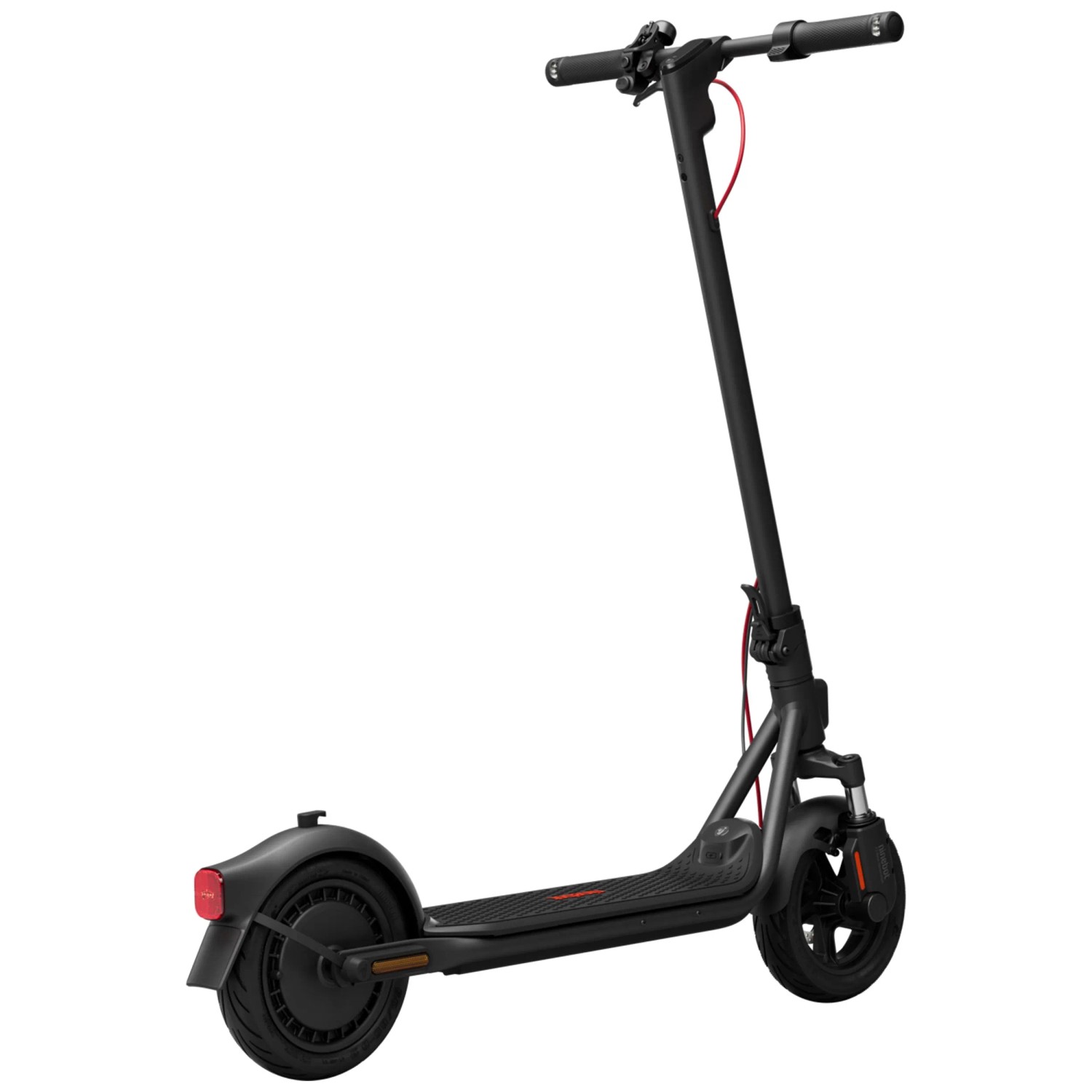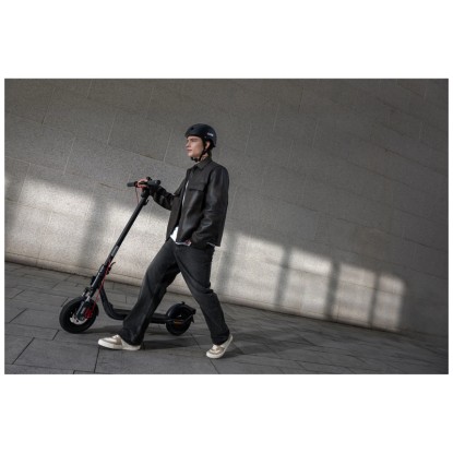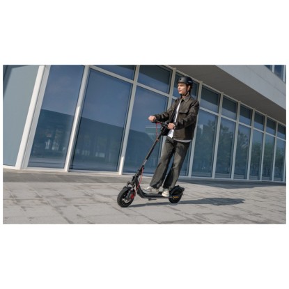 Der Ninebot F2 D II ist ein leistungsstarker E-Scooter für den täglichen Arbeitsweg und überzeugt mit einer Reichweite von bis zu 55 km und einer maximalen Geschwindigkeit von 20 km/h. Er ist mit einem 800-W-Motor und einer vorderen Doppel-Federung ausgestattet und bietet Komfort und Stabilität, während die selbstabdichtenden 10-Zoll-Reifen für Pannenschutz sorgen. Das duale Bremssystem mit Scheibenbremse vorne und elektronischer Hinterradbremse sorgt für zuverlässiges Bremsen. Integrierte Blinker sowie ein helles LED-Frontlicht verbessern die Sichtbarkeit im Strassenverkehr. Dank des Gehäuses aus hochfestem Stahl ist der IPX5-wasserfeste E-Scooter für anspruchsvolle Herausforderungen bei jedem Wetter bereit.