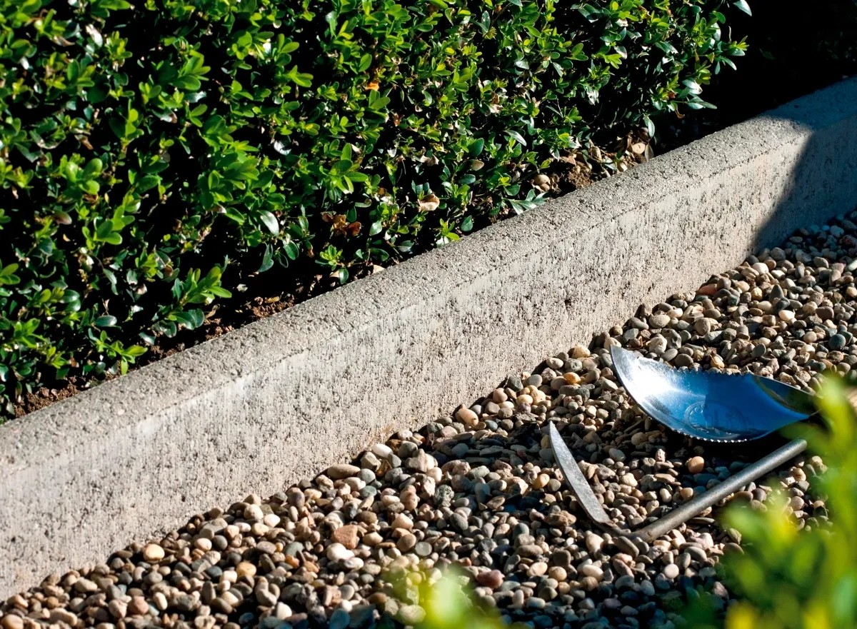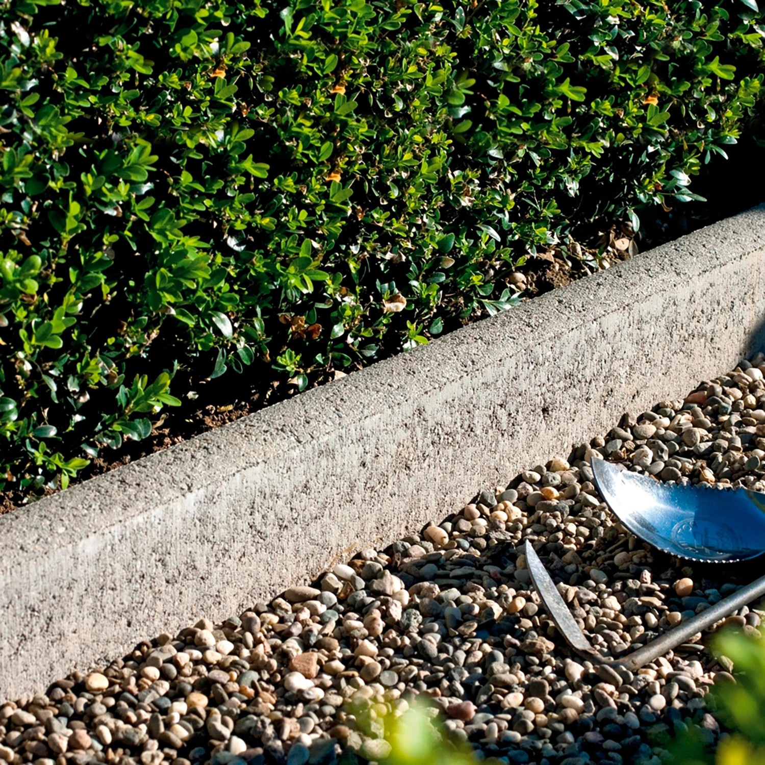 Ein Rand- und Beetstein aus Beton mit Nut und Feder. Das handliche Format erleichtert den Einbau.