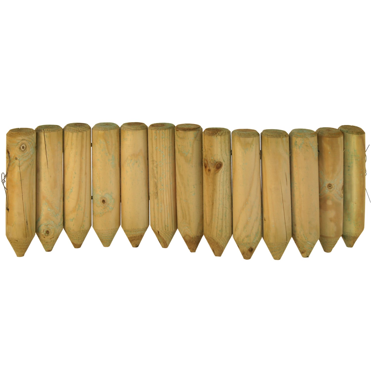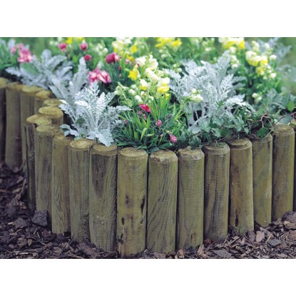 Das Rundholzbord ist eine Beet-Einfassung aus 13 je sechs Zentimeter breiten, runden Latten aus Kiefer. Das Rundholzbord ist grün imprägniert und biegsam. Somit ist es sehr gut für Kurven geeignet.
