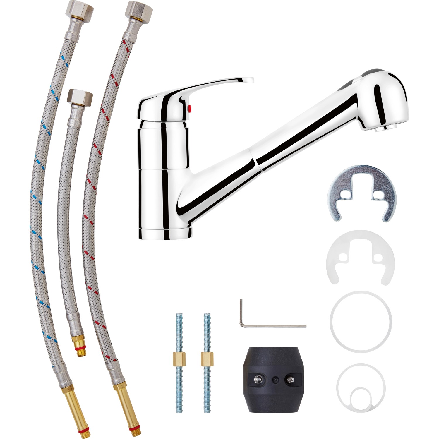 Den weichen Wasserstrahl verdankt die Küchenarmatur der enthaltenen Mischdüse. Dazu haben wir bereits eine hochwertige Kartusche mit keramischen Dichtscheiben für Sie verbaut, sodass Sie nach dem Einbau schnell loslegen können. Und weil Sie eine Küche wollen, die lange hält, besteht die Armatur aus solidem Messing. Mit ihrer Oberfläche in Edelstahloptik verleiht die Armatur Ihrer Küche einen modernen Look. Und damit Sie bei der Montage nicht unnötig Zeit verschwenden müssen, legen wir der Armatur alles an Material bei, das Sie dafür brauchen.