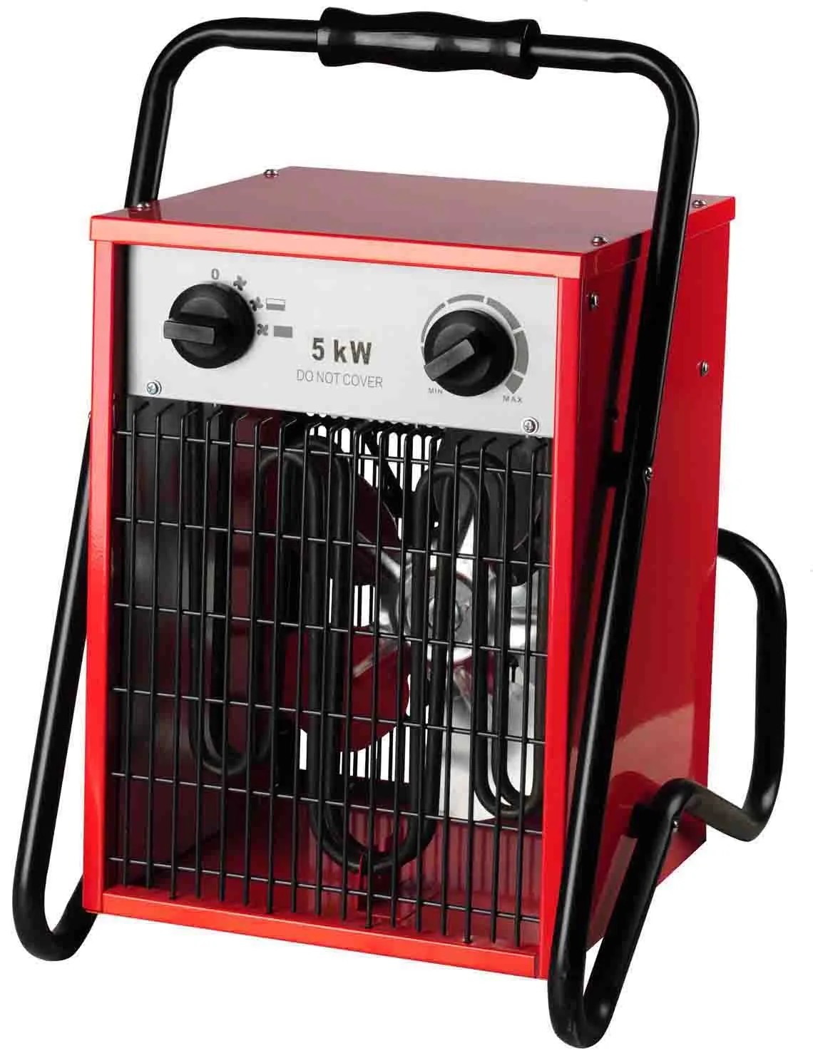 Kompaktes 5-kW-Heizgerät mit Thermostat und drei Stufen. (0 / Ventilator / 2,5 kW / 5 kW)