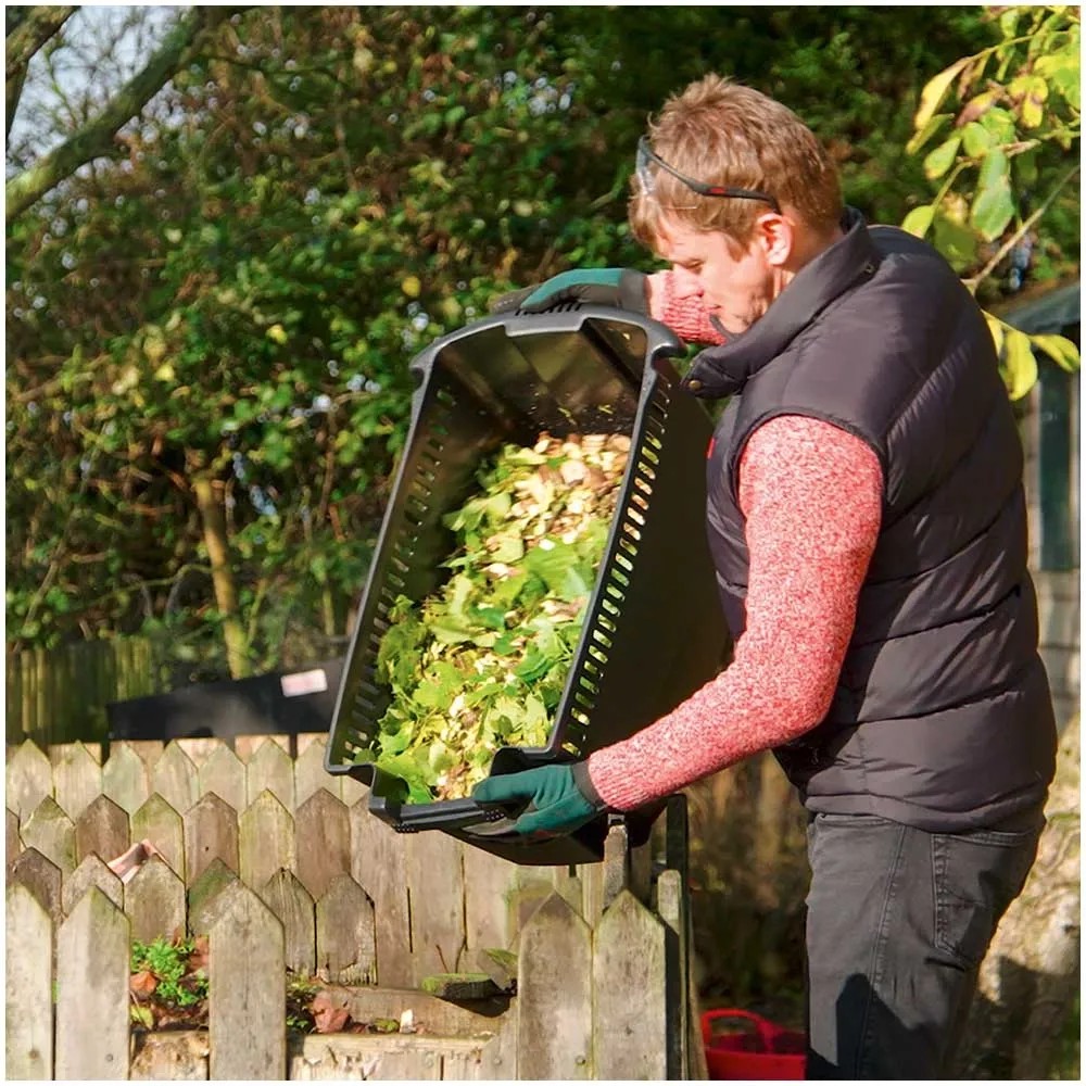 Das grosszügige Fassungsvermögen der Fangbox (53 l) spart Zeit und Wege zum Komposthaufen. Das gehäckselte Schnittgut benötigt weniger Platz in der Bio-Tonne und eignet sich hervorragend als Kompost oder Mulch. Für eine problemlose und kompakte Lagerung lässt sich der Trichter bequem in der Fangbox verstauen, so dass der Häcksler dann nur noch 67 cm hoch ist.