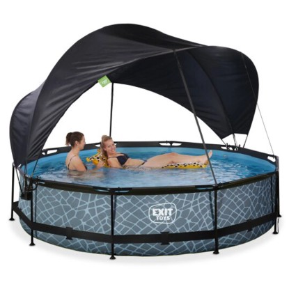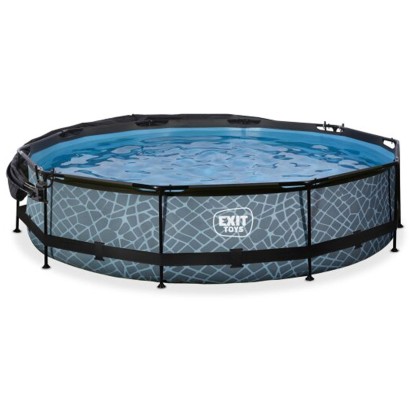 Exit Pool Stone Grau Ø 360 x 76 cm inkl. Pumpe und Sonnenschutz