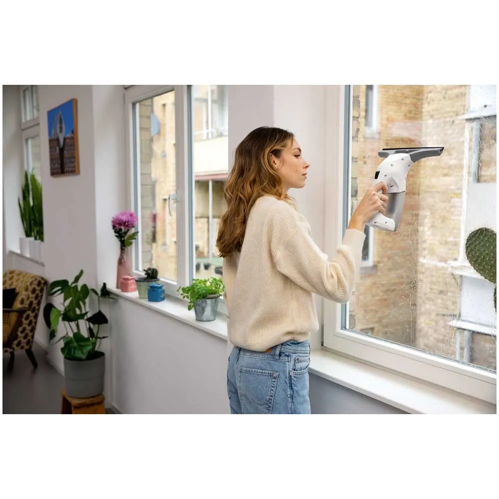 Der kabellose Fenstersauger von Kärcher sorgt für streifenfrei saubere Fenster und spart zudem viel Zeit und Mühe. Die clevere Kombination aus Sprühflasche und Einwischer gewährleistet eine höchst effektive Reinigung. Anschliessend saugt das handliche Gerät das Wasser zuverlässig von der Scheibe ab - ohne tropfendes Schmutzwasser und ohne Streifen. Im Vergleich zu konventionellen Methoden geht die Reinigung spürbar leichter und 3 x schneller von der Hand. Der komfortable Akkubetrieb und die kompakte Bauart garantieren maximale Flexibilität bei der Reinigung sämtlicher glatter Haushaltsoberflächen, beispielsweise Fenster, Spiegel, Fliesen, Glastische und Duschwände.