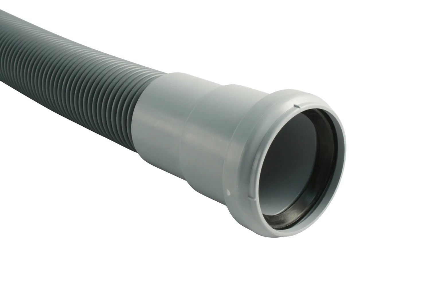 HT-Flexschlauch mit angeschweisstem HT-Anschluss DN 50 und einem Abgang DN 40/50. Die saubere, sichere Steckmontage macht Ihnen das Verlegen leicht. Lippendichtringe sind schon vormontiert. Für alle Abwasseranschlüsse im Haus.