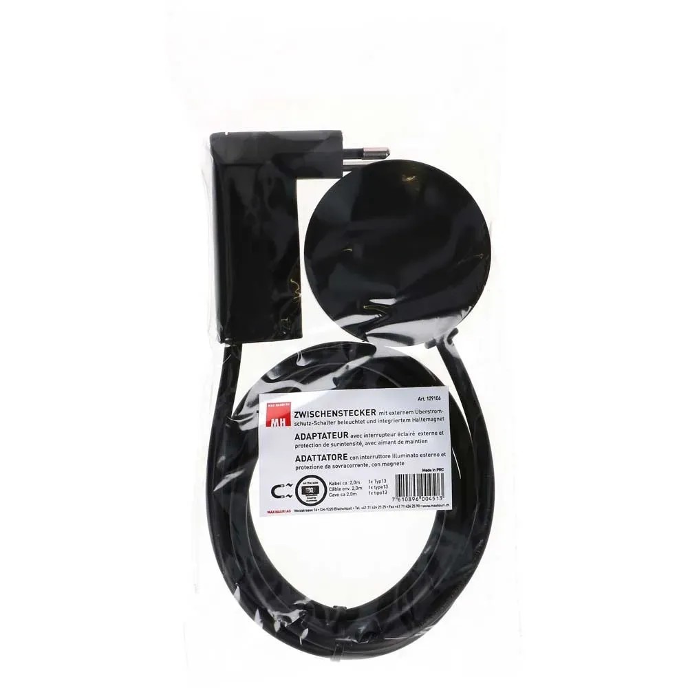 Avec ce connecteur intermédiaire noir Max Hauri, vous pouvez allumer et éteindre vos appareils électriques connectés de manière simple et pratique. Il dispose d'un interrupteur externe avec aimant intégré et d'un câble de connexion de 2 mètres. Cela vous permet de placer facilement l'interrupteur sur la table et de commuter la prise en toute commodité. L'interrupteur de sécurité avec protection intégrée contre les surintensités et fonction de réarmement protège de manière fiable contre les surcharges.