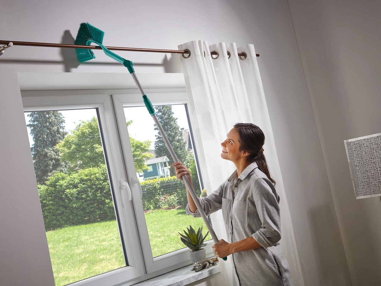 La brosse pour murs et plafonds Dusty vous permet d'éliminer la saleté, les toiles d'araignée et la poussière de tous les coins et de tous les angles. Son design amélioré permet d'atteindre des endroits difficiles d'accès, même derrière la tringle à rideaux. La balayette compacte est équipée du système Easy-Click Leifheit et peut être rallongée avec 1 des 3 manches télescopiques disponibles séparément. La balayette peut être nettoyée à l'eau courante.