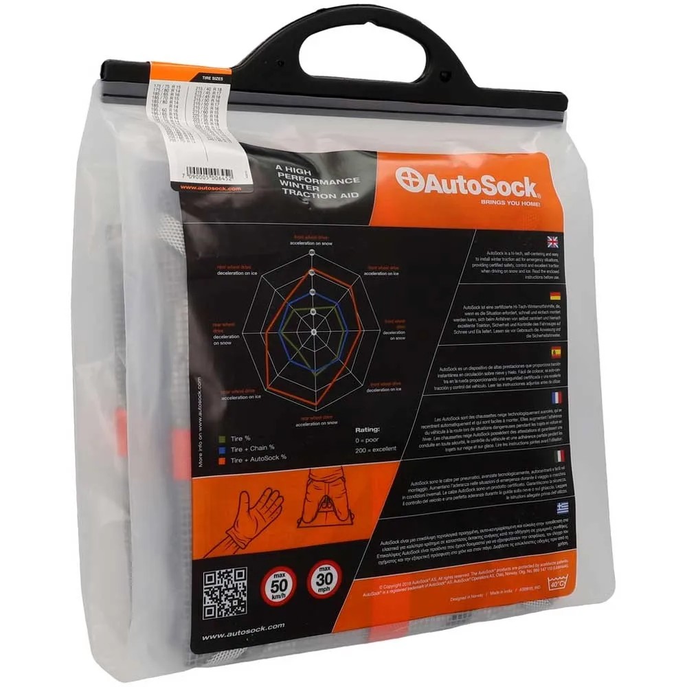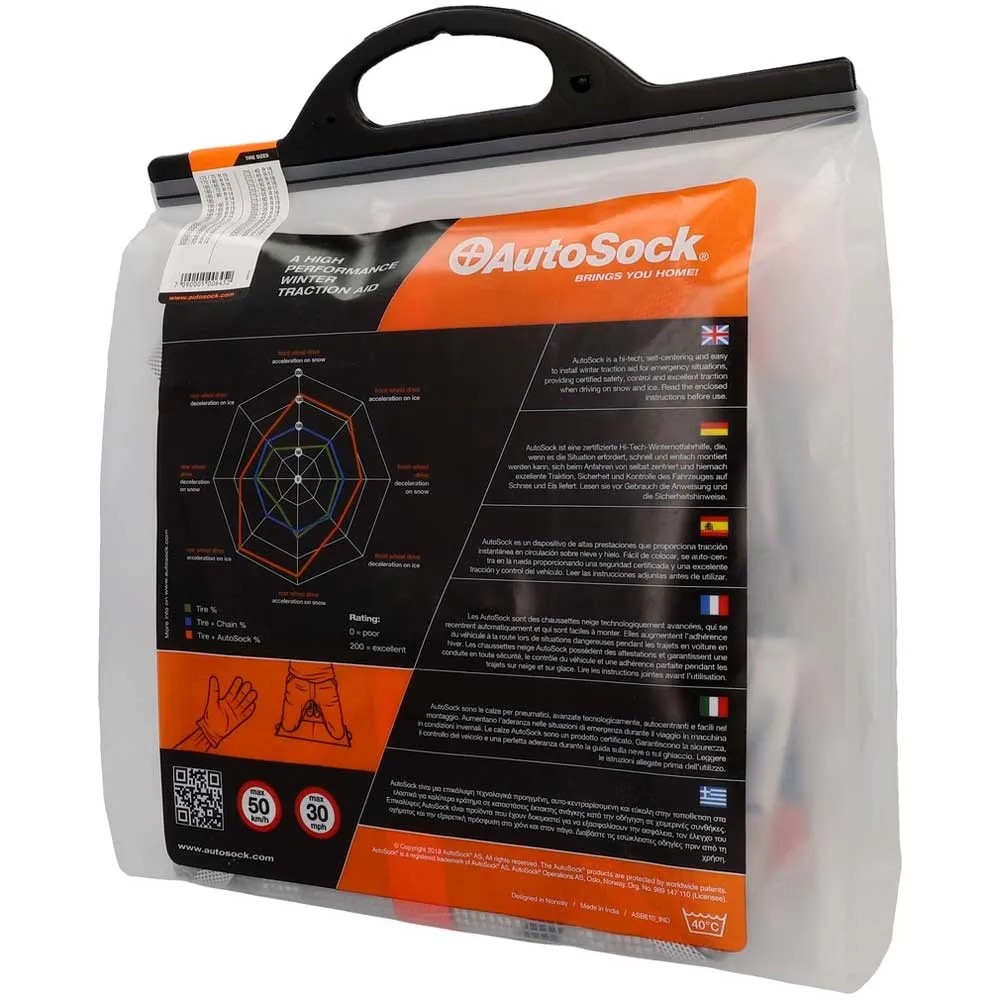 AutoSock ist die originale textile Traktionshilfe aus Norwegen. Als textile Socke kann AutoSock über die Reifen gezogen werden, um mehr Grip auf verschneiten und eisigen Strassen zu erreichen. So garantiert sie geräuscharme und gleichbleibende Fahreigenschaften der Reifen. Die ultraleichte Anfahrhilfe lässt sich platzsparend im Auto verstauen und ist in jedem Notfall schnell griffbereit. Eine schnelle Montage sowie Demontage macht AutoSock zum idealen Begleiter. AutoSock, das ist hoher Fahrkomfort bei gleich bleibendem Fahrspass und maximaler Sicherheit. AutoSock ist in allen EU-Mitgliedsländern und auch in der Schweiz als Schneekettenalternative zugelassen.