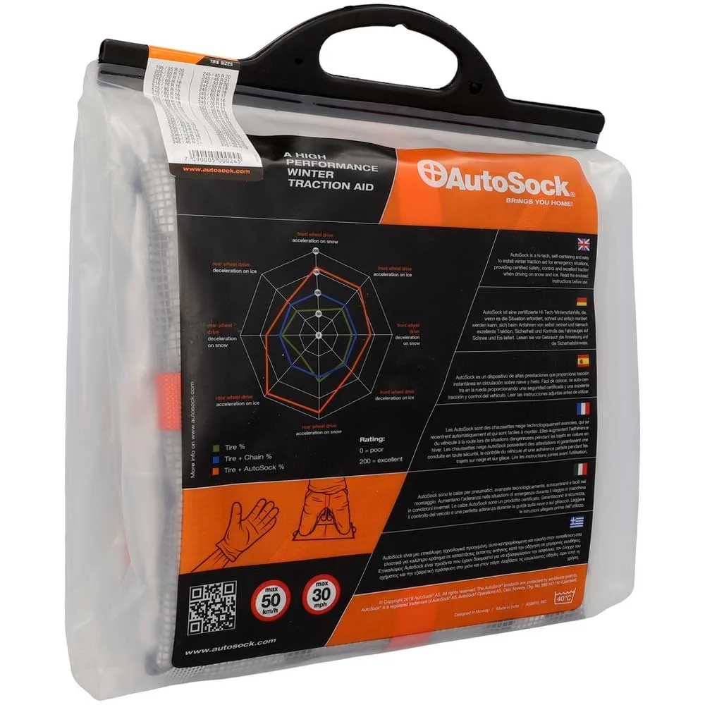 AutoSock ist die originale textile Traktionshilfe aus Norwegen. Als textile Socke kann AutoSock über die Reifen gezogen werden, um mehr Grip auf verschneiten und eisigen Strassen zu erreichen. So garantiert sie geräuscharme und gleichbleibende Fahreigenschaften der Reifen. Die ultraleichte Anfahrhilfe lässt sich platzsparend im Auto verstauen und ist in jedem Notfall schnell griffbereit. Eine schnelle Montage sowie Demontage macht AutoSock zum idealen Begleiter. AutoSock, das ist hoher Fahrkomfort bei gleich bleibendem Fahrspass und maximaler Sicherheit. AutoSock ist in allen EU-Mitgliedsländern und auch in der Schweiz als Schneekettenalternative zugelassen.