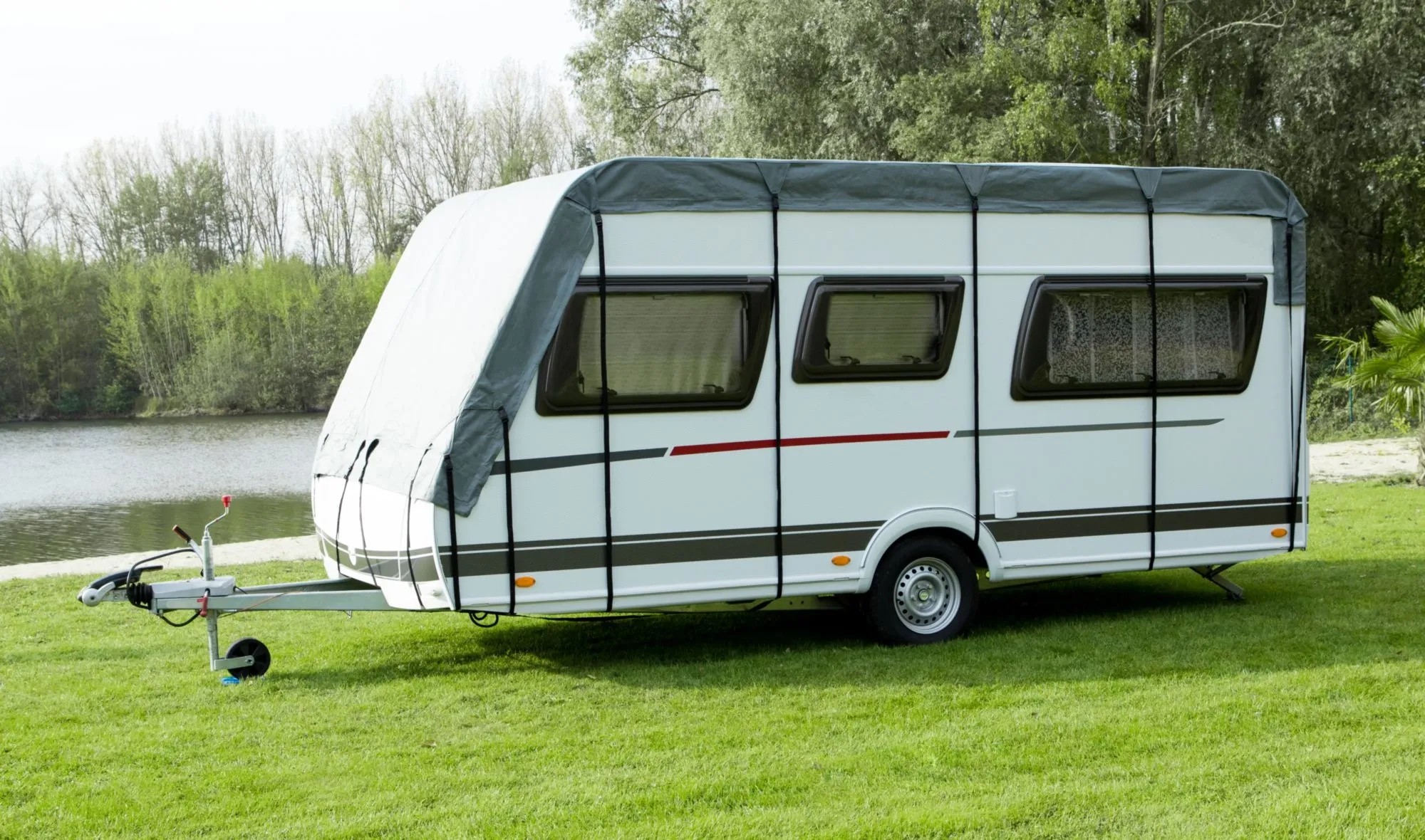 Abstandshalter und Schutzecken (separat erhältlich) dienen der Vermeidung des Kontakts der Spanngurte mit dem Fahrzeug und als Umverteiler der Zugkraft im sensiblen Bereich der Fahrzeugunterkante.