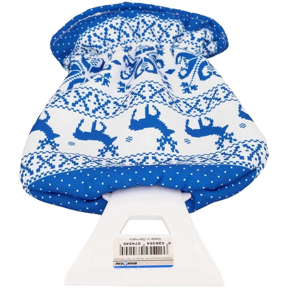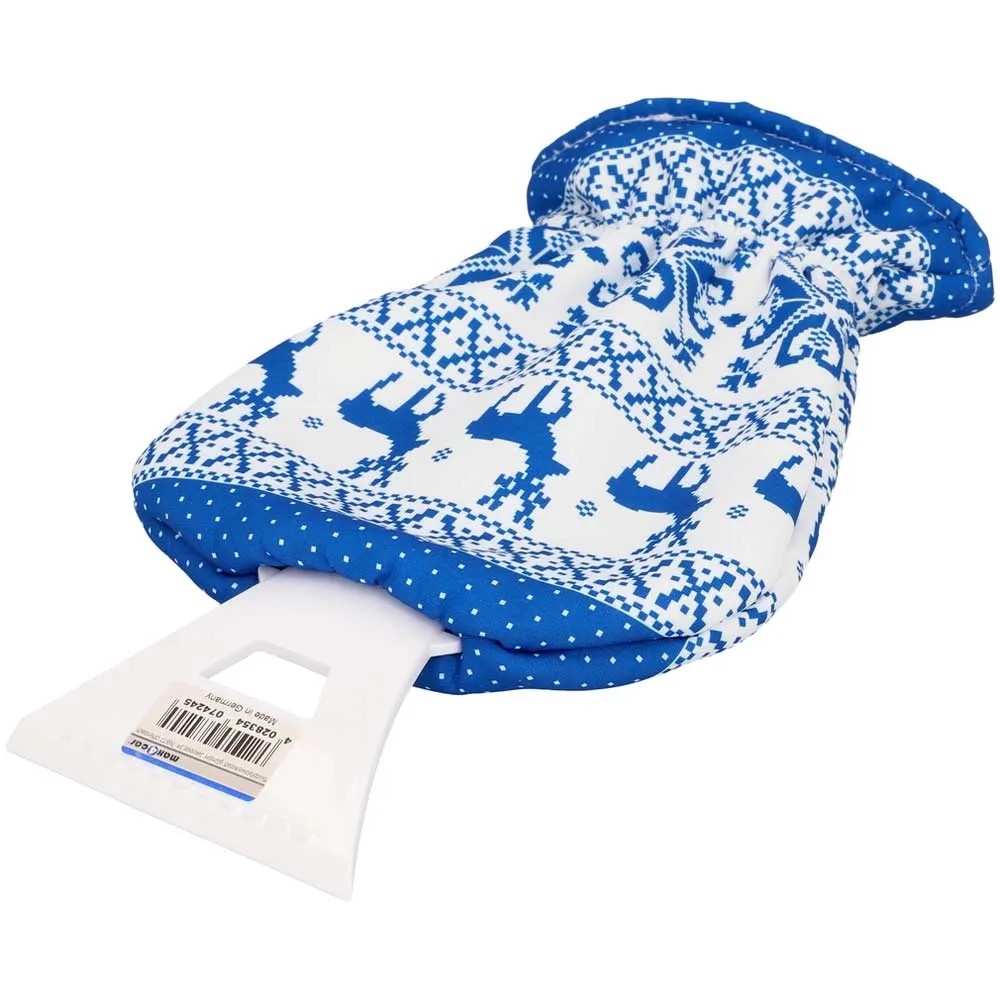 Der stabile Eisschaber verfügt über zusätzliche Eisbrechzähne. Die wirksame Schabkante ist 10,5 cm breit. Der wasserabweisende Handschuh in modernem Norweger-Desgin hat einen Elastikbund und innen warmes Plüschfutter. Er ist in den Farben rot-weiss und blau-weiss erhältlich.