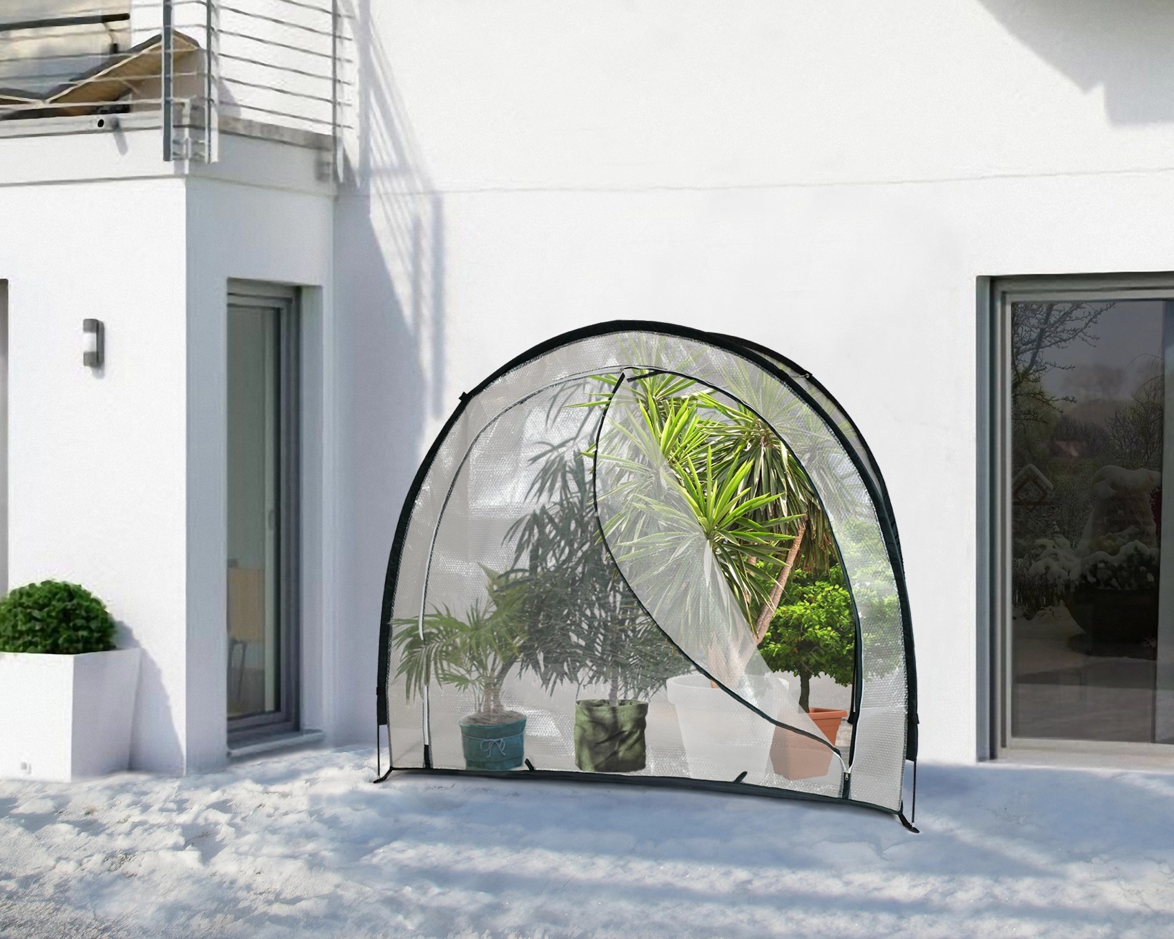 Das Videx Frostschutzhaus Ice Extrem ist ideal für Kübelpflanzen geeigent. Die gut isolierende ISO-Luftpolsterfolie hält Kälte und Wind ab und schützt dadurch Ihre Pflanzen. Die lichtdurchlässige Folie ist UV-beständig und formstabil. Das Haus verfügt über einen Zwei-Wege-Reissverschluss und ist mit Hilfe des Stecksystems und der Verschraubung schnell und stabil aufgebaut. Es kann mit Hilfe der mitgelieferten Bodenheringe und stabilen Seile zusätzlich am Boden befestigt werden. Das sorgt für guten Halt bei Wind und Wetter.