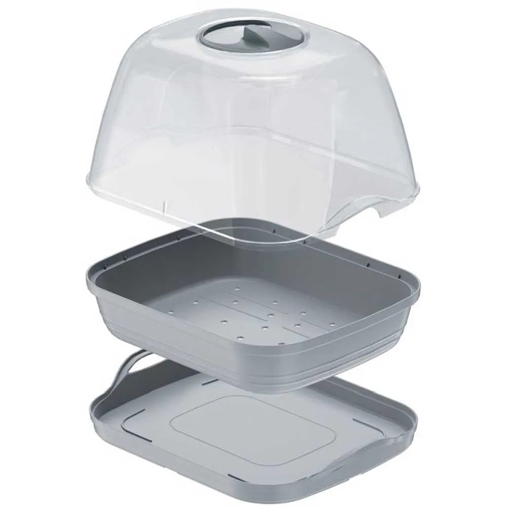 Bauen Sie frische Kräuter und Gemüse an - das Tisch-Frühbeet 3in1-Set enthält eine flache Schale, eine tiefe Schale mit Wasserabflusslöchern, damit Ihre Pflanzen gerade genug Wasser bekommen und einen Deckel mit Belüftung, um das Pflanzenwachstum zu fördern. Das Beet hat nur einen geringen Platzbedarf und lässt sich einfach zusammenbauen.