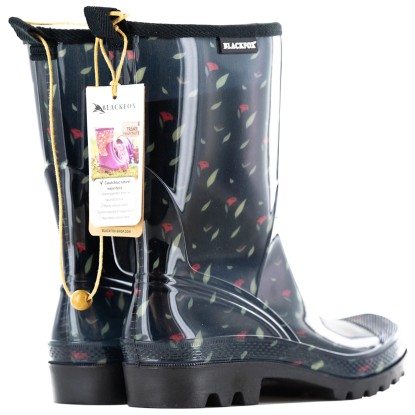 Die Blackfox Damenstiefel Marta in Schwarz sind eine stilvolle und praktische Wahl für modebewusste Frauen. Hergestellt aus PVC, verfügen die Stiefel über einen durchsichtigen Schaft, der mit einer bedruckten Socke kombiniert ist und dadurch einen einzigartigen Look erzeugt. 30 % des verwendeten PVC-Materials bestehen aus recyceltem Material. Die Stiefel sind pflegeleicht und eignen sich perfekt für den Alltag sowie für verschiedene Wetterlagen. Diese Stiefel bieten eine gelungene Mischung aus modischem Design und Komfort.