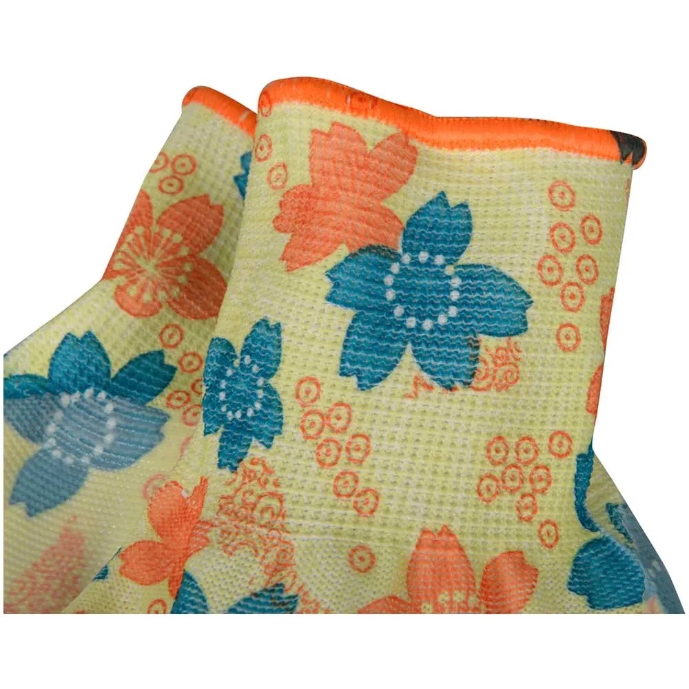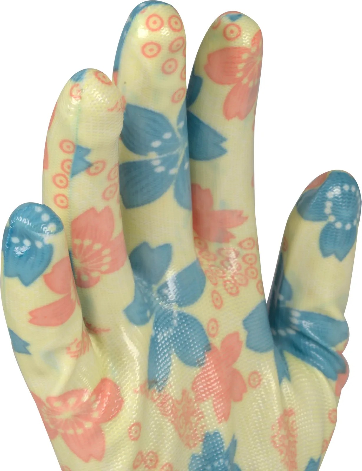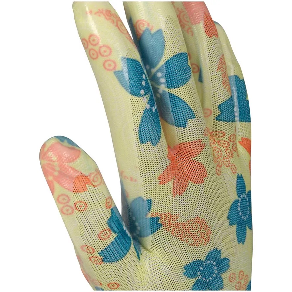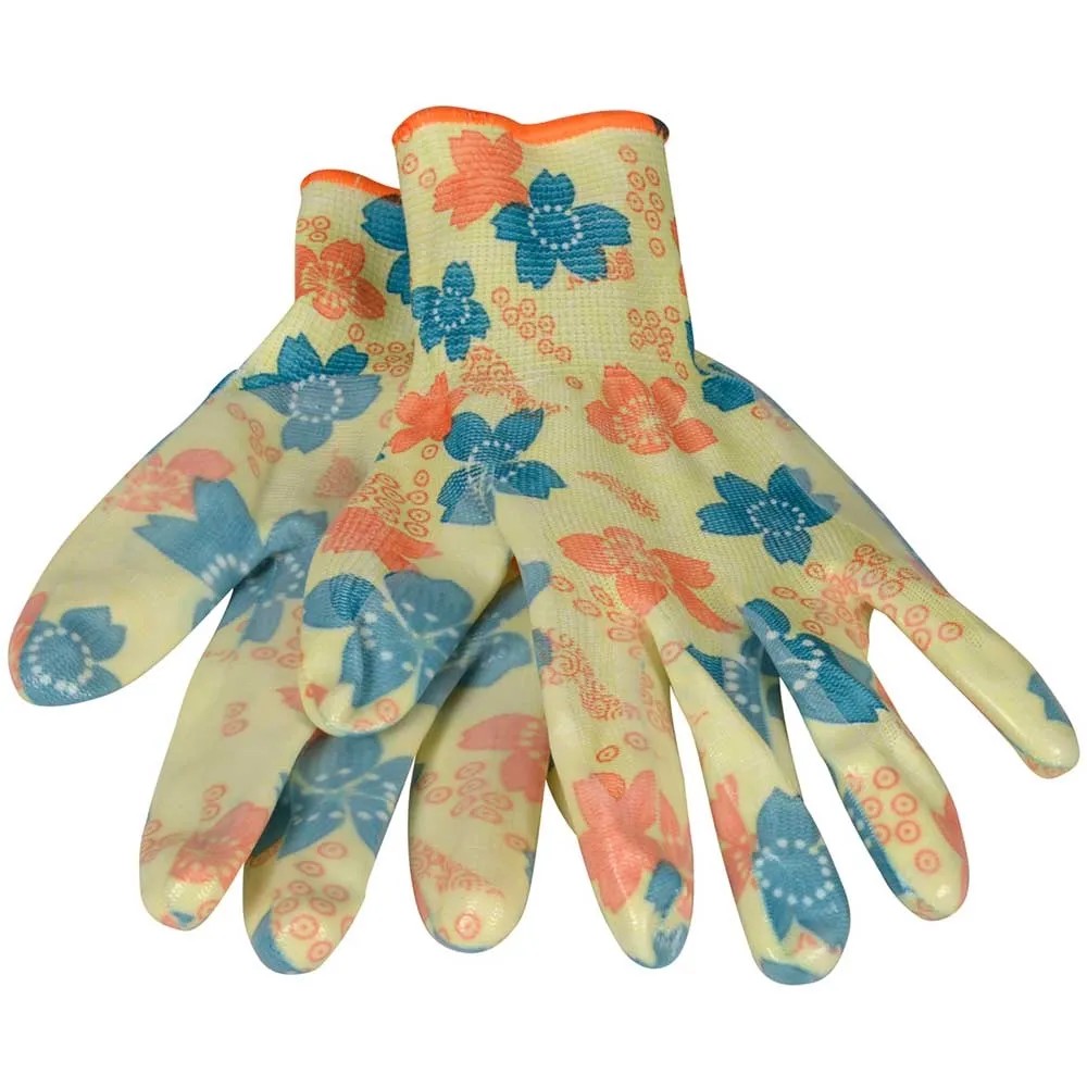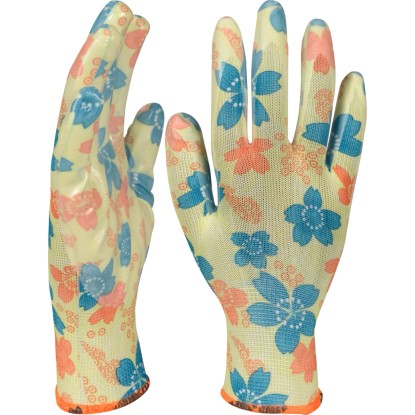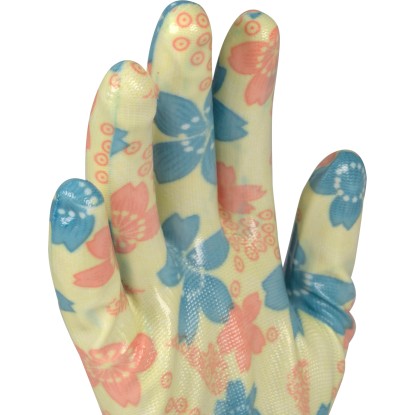 Der Ox-On Handschuh Garden Basic 5005 ist ein Gartenhandschuh in einem schönen femininen Design. Er eignet sich wunderbar für Arbeiten im Garten oder mit Geräten, für leichtere Reinigungstätigkeiten, Umpflanzarbeiten, zum Jäten von Unkraut und für vieles mehr. Der Handschuh ist ein fingergetauchter Strickhandschuh aus Polyester, der gut sitzt und eine optimale Passform bietet. Handfläche und Fingerkuppen sind aus wasserfestem Nitril gefertigt, um nasse Hände zu vermeiden und gleichzeitig einen hervorragenden Griff an Geräten, Pflanzen usw. zu bieten. Die schönen Farben des Blumendrucks verleihen Ihrem Arbeitsalltag im Garten zusätzlich Farbe.