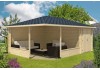 Der Holzpavillon überzeugt mit einer stabilen Konstruktion aus 40 mm Blockbohlen aus nordischer Fische mit 4-fach Eckausfräsung. Dadurch ist die Gartenhütte vor Wind und Regen geschützt. Auch das moderne Zeltdach macht nicht nur optisch etwas her, sondern ist auch dank massiven Nut- und Federbrettern besonders stabil. Zusätzliche Sturmleisten sichern den Pavillon vor Wind. Die Bauweise ermöglicht eine seitenverkehrte Montage, wofür allerdings keine gesonderte Montageanleitung vorliegt.| Aussenmass mit Dachüberstand: 600 cm x 425 cm |