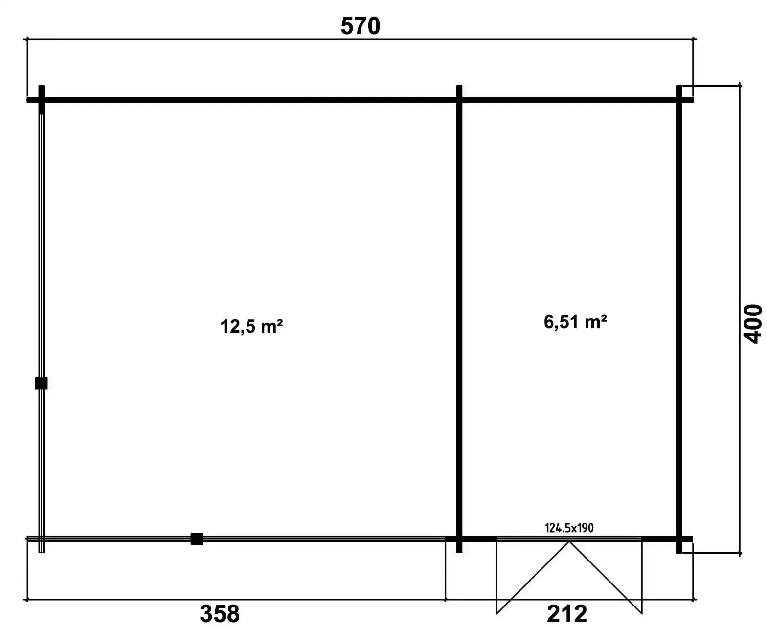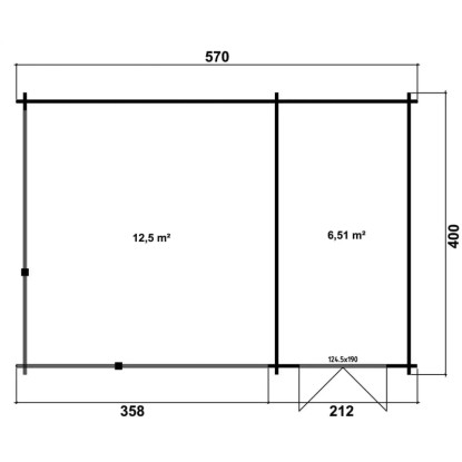 | Aussenmass ohne Dachüberstand: 570 cm x 400 cm |