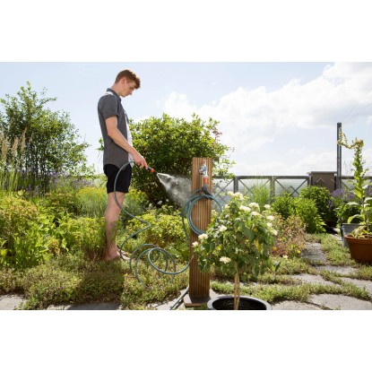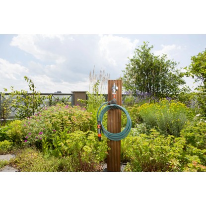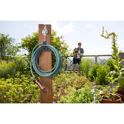 Durch die integrierte Halterung kann der Schlauch platzsparend am Hahn aufbewahrt werden und ist jederzeit einsatzbereit. Dank der bewährten Qualität gehen Halter, Schlauch und Wasserhahn eine feste Verbindung ein - alles passt perfekt zusammen und bleibt wasserdicht.