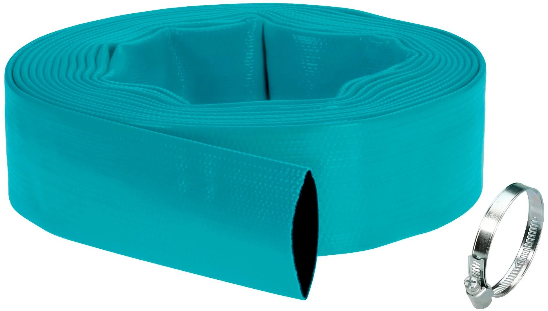 Das Gardena Flachschlauch-Set mit einem Durchmesser von 38 mm (1 1/2") ist dank der leichteren Qualität ideal für den Einsatz mit Tauchpumpen. Er besteht aus doppellagigem, gewebeverstärktem PVC-Material, ist witterungs- und UV-beständig sowie temperaturbeständig von -20 °C bis +60 °C. Der Schlauch ist druckresistent bis zu 5 bar. Der Berstdruck beträgt 15 bar. Der Flachschlauch Ø 38 mm (1 1/2") hat eine Länge von 10 Meter und kann nach Gebrauch platzsparend aufgerollt werden. Inklusive Schlauchschelle. Der Schlauch ist frei von Kadmium, Blei und Barium und frei von Regenerat.