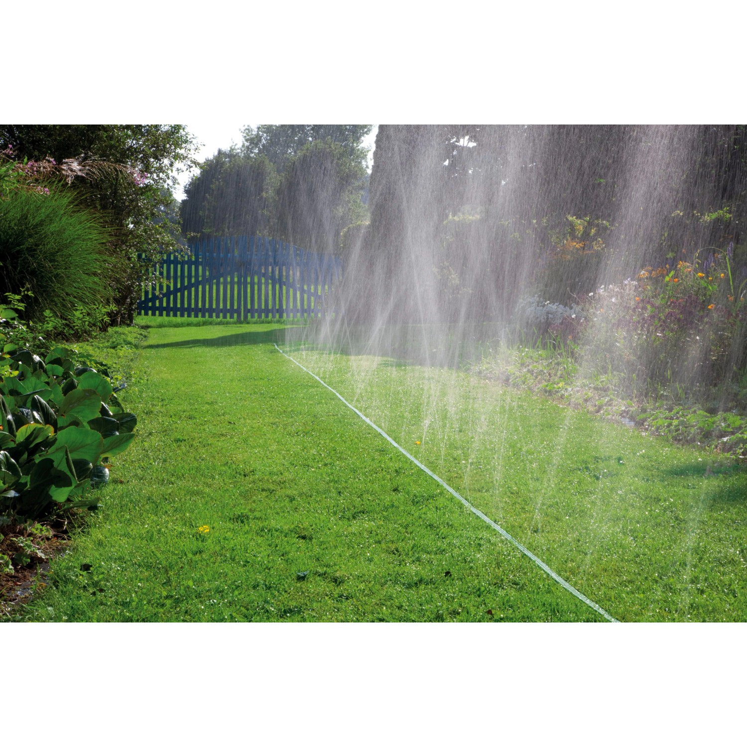 Der Gardena Schlauchregner verspricht optimal feinen Sprühregen für Beete, Rabatte und schmale Zonen. Er ist bereits mit allen nötigen Gardena Systemteilen ausgestattet, sodass Sie ihn nur noch an die Wasserquelle anschliessen müssen. Der grünfarbene Schlauchregner hat eine Fixlänge von 15 m, er ist aber durch einfaches Zusammenstecken bis maximal 22,5 m verlängerbar. Darüber hinaus ist der Schlauchregner auch individuell verkürzbar -schneiden Sie ihn einfach auf die gewünschte Länge ab und montieren Sie die Anschlussteile. Ausserdem können Sie den Schlauchregner in der Länge bekommen, in der Sie ihn benötigen, da er auch als mware erhältlich ist. Dieser Schlauchregner hat 10 Jahre Schlauchgarantie. Für die einfache Beregnung kleiner Flächen.