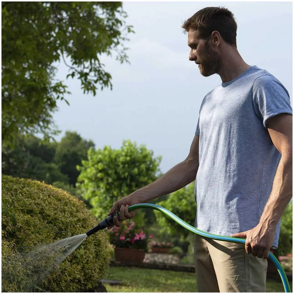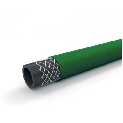 Dieser Gartenschlauch hat einen transparenten grünen Aussenmantel und verfügt neben einer Kreuzgewebe-Verstärkung über eine schwarze Anti-Algen-Innenschicht. Der Schlauch ist temperaturbeständig. In der Set-Version ist er mit neuem Verbindersatz und Schlauchdüse sowie 3/4"-Wasserhahn-Anschluss erhältlich (nicht im Lieferumfang). Der Schlauch hat einen Durchmesser von 15 mm (5/8") und eine Länge von 25 m. Der Berstdruck beträgt 21 bar.