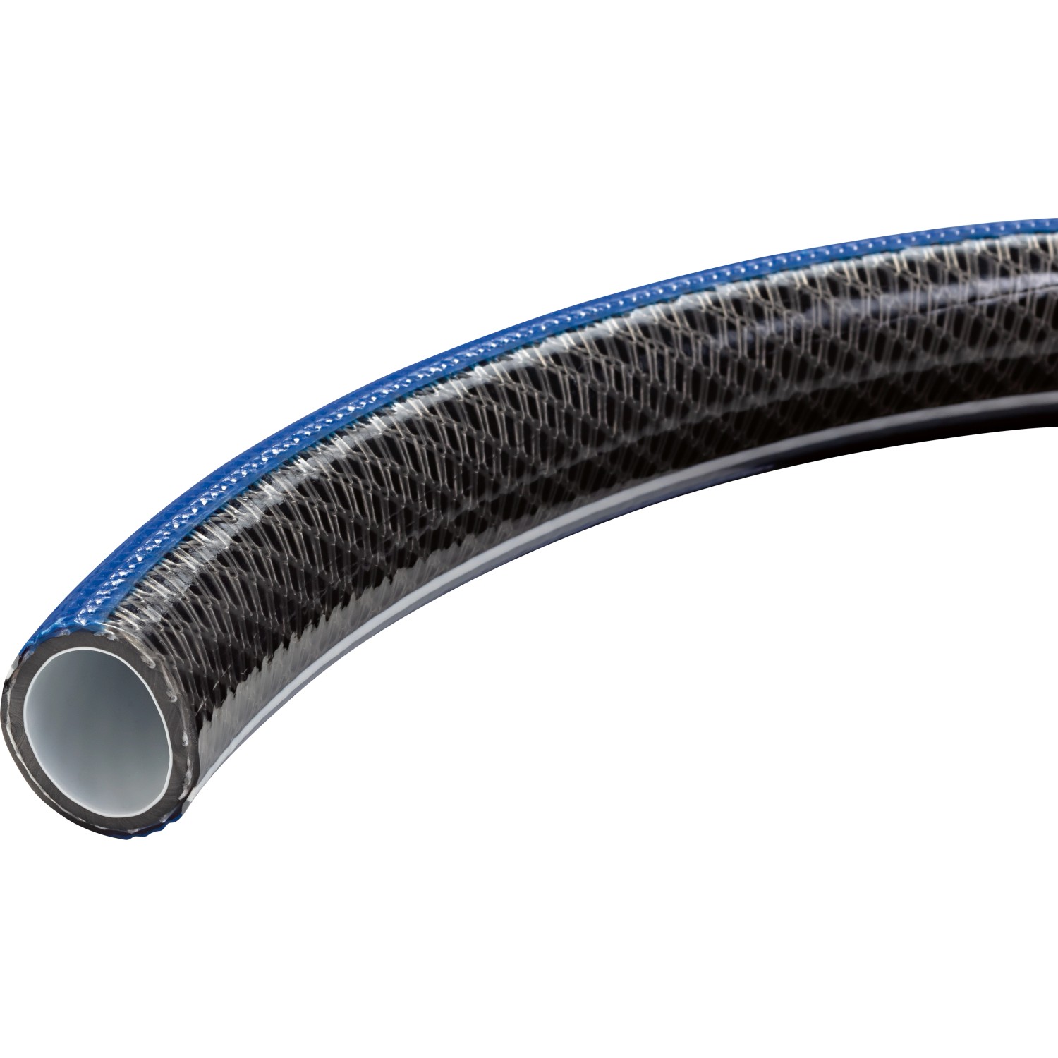 Der hochwertige, fünflagige Trikotgewebeschlauch besitzt einen Berstdruck von bis zu 35 bar und erfüllt somit höchste Ansprüche. Sein mehrlagiger Aufbau gewährleistet eine Temperaturbeständigkeit von -20 °C bis +60 °C und schützt durch eine hohe UV-Beständigkeit zuverlässig vor Algenbildung. Dank seine Cadmium-, Barium- und Bleifreiheit schonen Sie zudem die Umwelt.