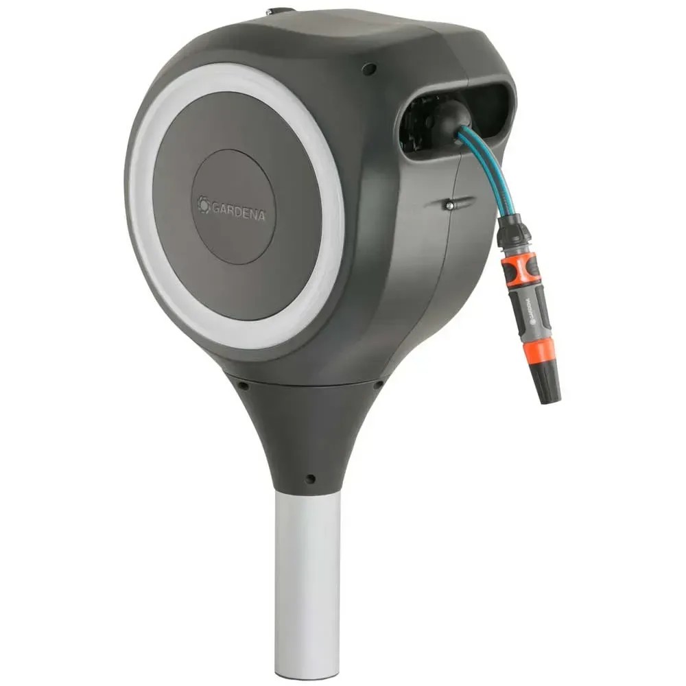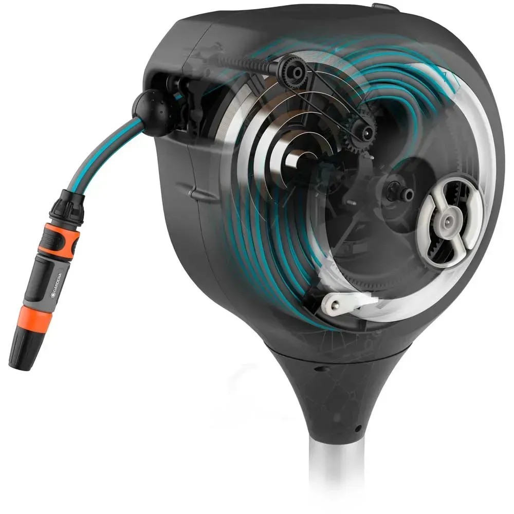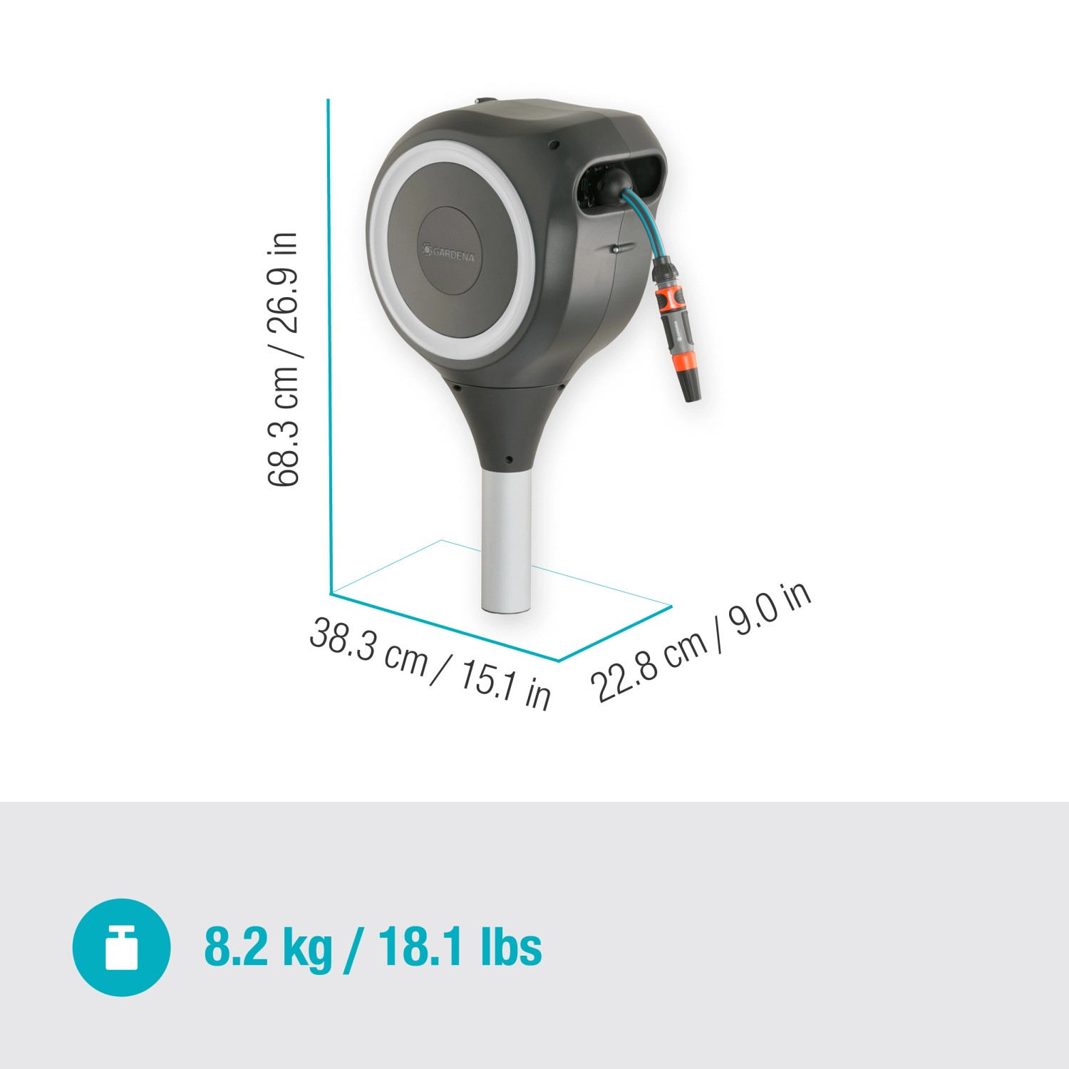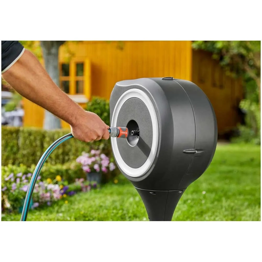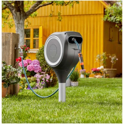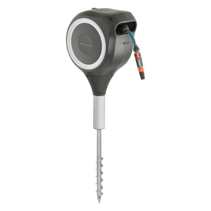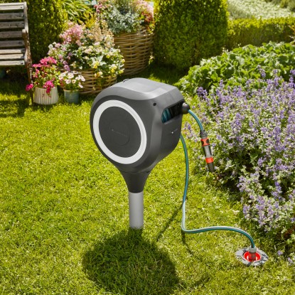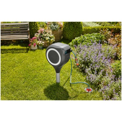 Mit der Gardena Garten-Schlauchbox RollUp S ist der Gartenschlauch sofort einsatzbereit und nach der Bewässerung schnell und ohne zu verknoten wieder verwahrt. Die Gartenschlauchbox wird mittels Erdspiess aus Metall im Erdreich befestigt und ist absolut flexibel einsetzbar. Die kompakte Box lässt sich um 360° drehen. Mit kurzen Arretierstopps kann der Schlauch auf die gewünschte Länge ausgezogen werden. Dank RollControl genügt ein kurzer Zug am Schlauch und er wird mit gleichmässiger Geschwindigkeit und sicher automatisch wieder aufgerollt. Mit Nachtropfstopp. Die Gartenschlauchbox ist frostsicher. Mit 15-m-Qualitätsschlauch (11 mm), flexiblem Anschlussschlauch, original Gardena Systemteilen und Spritze. Inklusive Erdspiess und Montagehilfe. Mit Diebstahlsicherung.