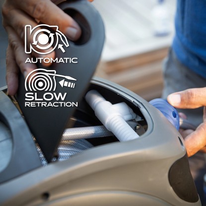 Da die Schlauchbox für die platzsparende Wandmontage vorgesehen ist, vermeiden Sie Stolperfallen im Aussenbereich und schaffen Ordnung. Hergestellt ist das Gehäuse aus UV-beständigem und witterungsbeständigem Kunststoff. Bei Bedarf kann die Schlauchbox einfach abgenommen werden. Damit Sie den Schlauch schnell und leicht wieder aufrollen können, verfügt die Wandschlauchbox über eine automatische Aufrollmechanik.