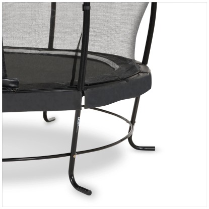 Mit doppelkonischen Federn für einen geschmeidigen Sprung und einem galvanisierten, pulverbeschichteten Rahmen ist das Trampolin funktional und langlebig - ideal für den Outdoor-Bereich. Der Schutzrand ist mit einer wasserabweisenden PVC-Schicht versehen und das Sicherheitsnetz wird mit einem Glasfiberring straff gespannt.