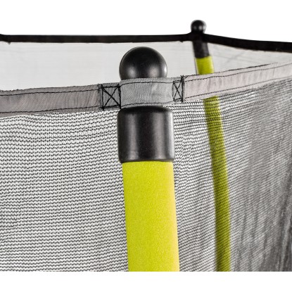 Im Gegensatz zu grösseren Trampolinen hat dieses Trampolin Gummibänder anstelle von Federn. Die Gummibänder sorgen für flüssiges Springen und eine sanfte Landung. Der Körper wird somit kaum belastet und kleine Kinder können mit Freude und voller Stolz ihre ersten Sprünge zeigen. Wird doch mal versehentlich daneben gesprungen? Dann wird Ihr Kind durch das mitgelieferte Sicherheitsnetz aufgefangen. Das Sicherheitsnetz wird am Sprungtuch befestigt, damit Kinder nie mit ihren Füssen oder Händen zwischen die Gummibänder gelangen können. Das Trampolin Tiggy Junior von Exit ist einfach aufzubauen, da keine Schrauben benötigt werden. Durch seine kompakte Form ist es ausserdem auch für den Innenbereich geeignet. Wenn das Wetter nicht so gut ist, können Sie das Trampolin also einfach drinnen aufstellen.