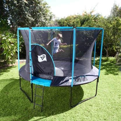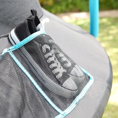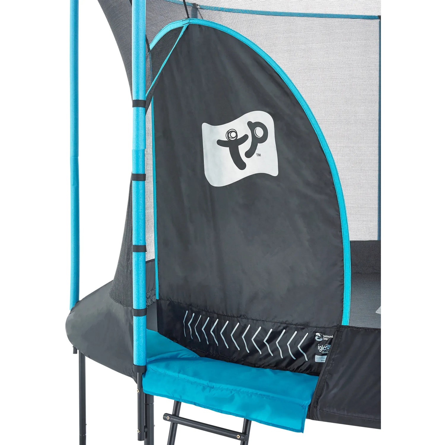 Dieses Premium-Trampolin ist vollgepackt mit grossartigen Designmerkmalen, um die Sicherheit der Kinder zu gewährleisten. Das patentierte SurroundSafe System verhindert, dass die Springer mit den Federn in Berührung kommen, während die einzigartige IGLOO-Tür einen lustigen und sicheren Tunnel bietet, durch den man ohne Reissverschluss kriechen kann.