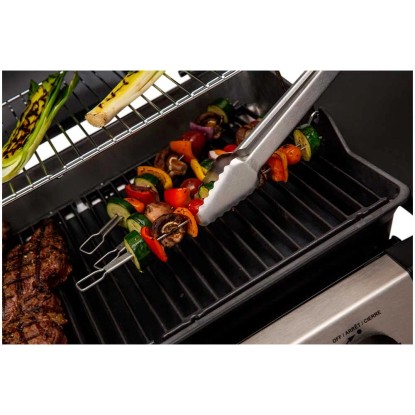 Der BK 310 von Broil King wurde unter den Aspekten der Qualität und Haltbarkeit hergestellt. Er ist mit praktischen Funktionen wie drei Edelstahl-Stabbrennern, matt emaillierten Gussrosten, einem verchromten Ablagerost und vielem mehr ausgestattet. Mit seiner kompakten Grösse und den klappbaren Kunstoffseitentablaren ist der Broil King BK 310 ideal für alle mit wenig Platz, ohne dabei auf die unverwechselbare Grillleistung von Broil King oder die elegante Optik zu verzichten. Der Gasgrill BK 310 verfügt über eine Sure Lite™ Elektrozündung. Die Gesamtleistung beträgt 6,9 kW. Die Gesamtmasse betragen (HxBxT) 108,2 x 126 x 53,3 cm.