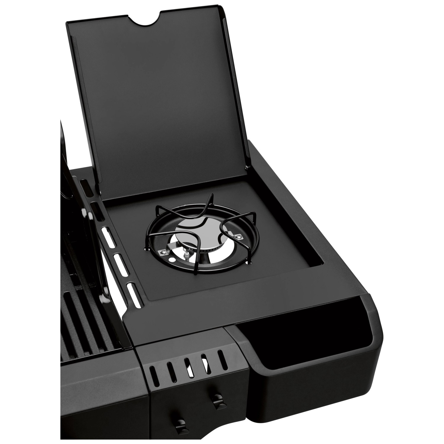 Mit 4 separat regelbaren Edelstahlbrennern und einer beeindruckenden Gesamtleistung von 14,7 kW bietet der Gasgrill vielfältige Zubereitungsmöglichkeiten. Dank der Devil's Zone erreichen Sie Spitzentemperaturen von bis zu 800 °C - ideal für eine perfekte Steak-Kruste. Ein gasbetriebener Seitenbrenner erweitert Ihre Kochmöglichkeiten, etwa für Saucen oder Beilagen.