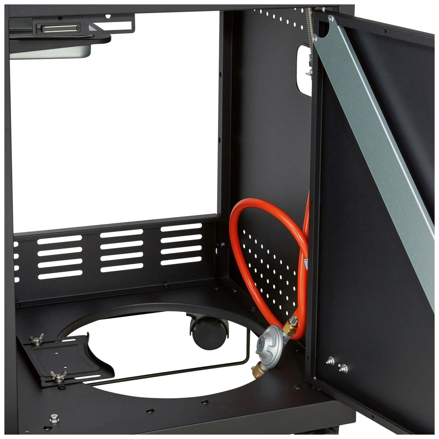 Der Kane ist ein freistehender Grill mit klassisch gestalteten Drehknöpfen, die eine intuitive Bedienung ermöglichen. Mit einer Arbeitshöhe von 87 cm grillieren Sie ergonomisch und bequem. Die seitlichen Ablagen bieten Platz für Zubehör und Zutaten, sodass alles griffbereit ist.