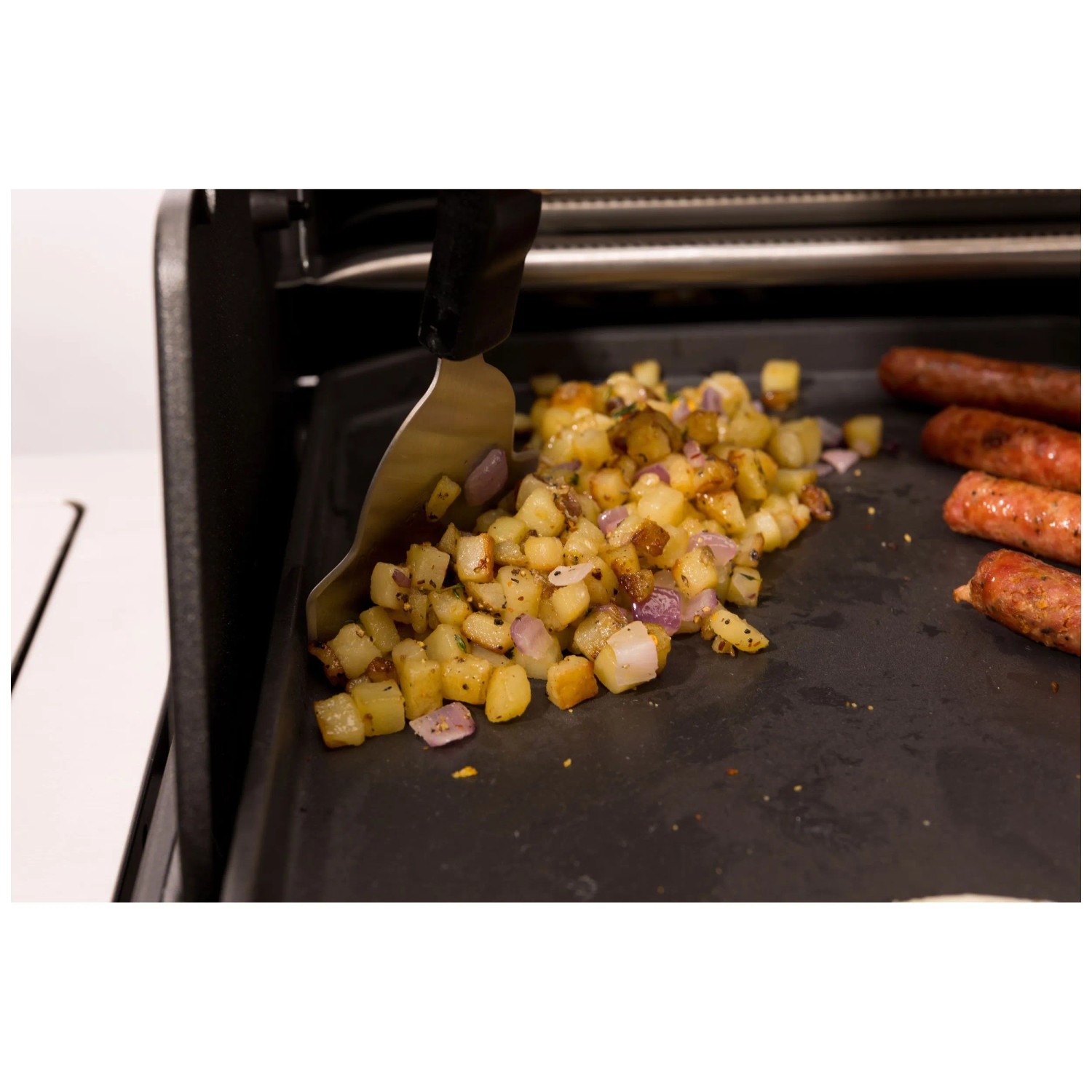 Die Broil King Plancha Do More aus der Crown-Serie bietet eine hochwertige, glatte Grillfläche, die speziell für das direkte Grillieren von empfindlichen Zutaten entwickelt wurde. Die Plancha eignet sich optimal, um Meeresfrüchte, Gemüse oder kleine Zutaten zuzubereiten, die auf dem klassischen Grillrost leicht durchfallen würden. Durch die gleichmässige Hitzeverteilung auf der gesamten Fläche wird ein professionelles Anbraten ermöglicht, was besonders für mediterrane und asiatische Gerichte von Vorteil ist. Sie erlaubt dank ihrer Bauweise das Zubereiten vielfältiger Speisen und sorgt für ausgewogene Grillergebnisse bei unterschiedlichsten Zutaten.