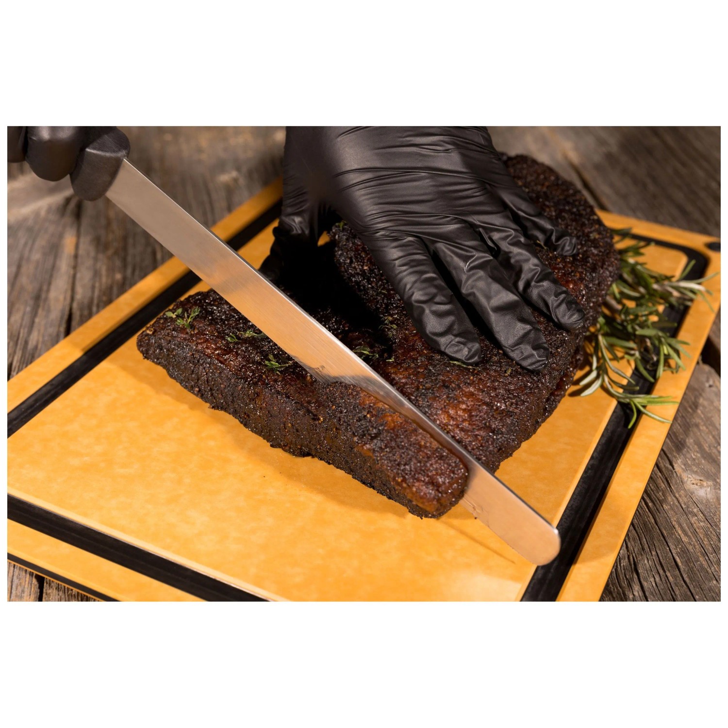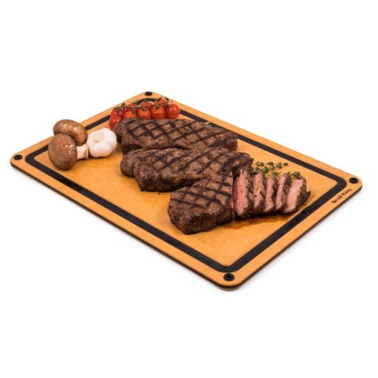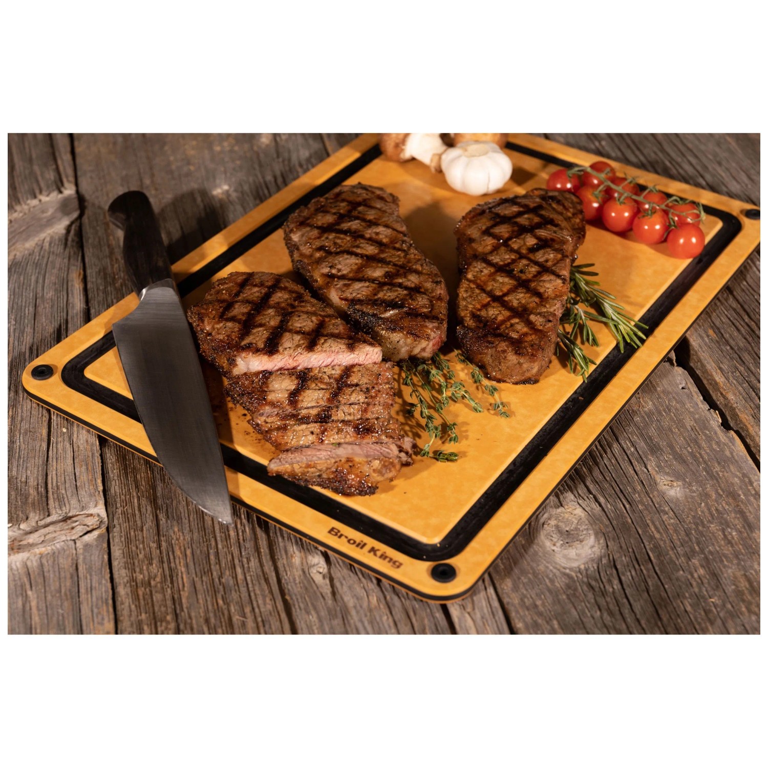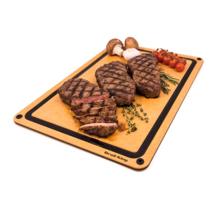 Das Broil King Schneidebrett besteht aus hochwertiger Bambusfaser und eignet sich optimal zum Schneiden von Fleisch, Gemüse und weiteren Zutaten am Grill oder in der Küche. Dank einer funktionalen Saftrille werden austretende Säfte sauber aufgefangen, wodurch Arbeitsflächen geschützt bleiben. Das Schneidebrett ist mit rutschfesten Silikonringen an allen 4 Ecken ausgestattet und sorgt für maximale Stabilität, selbst auf glatten Flächen. Es ist besonders schnittfest, langlebig und hygienisch. Das moderne, funktionale Design macht es zu einer vielseitigen Ergänzung für jede Grillstation oder Küche. Die Oberfläche ist schonend zu Ihren Messerklingen und das Brett lässt sich leicht reinigen.