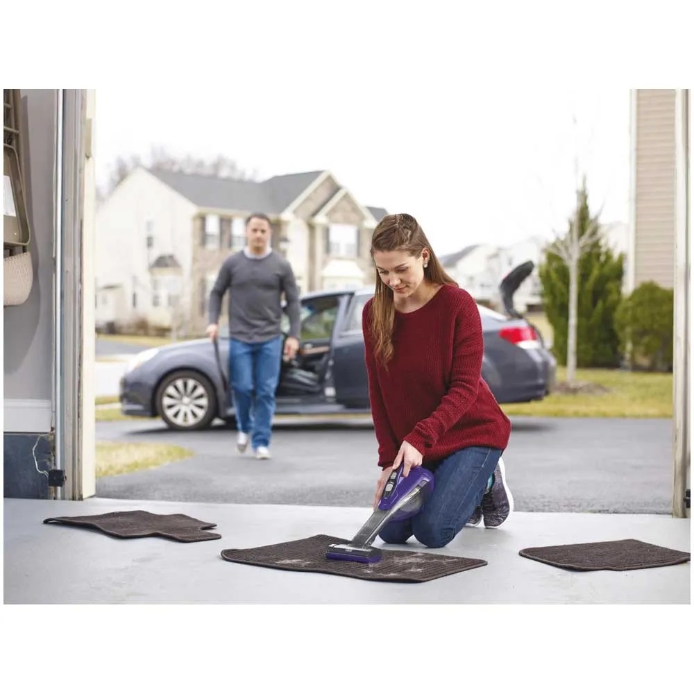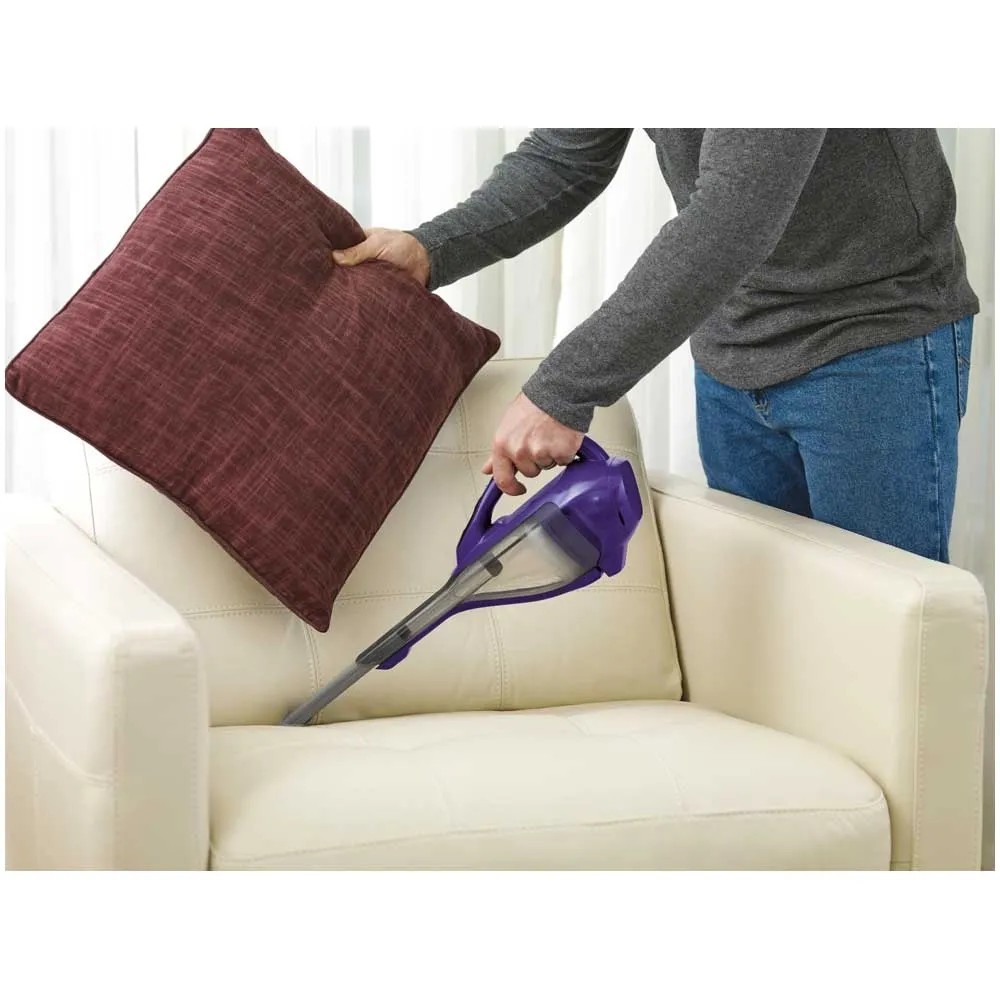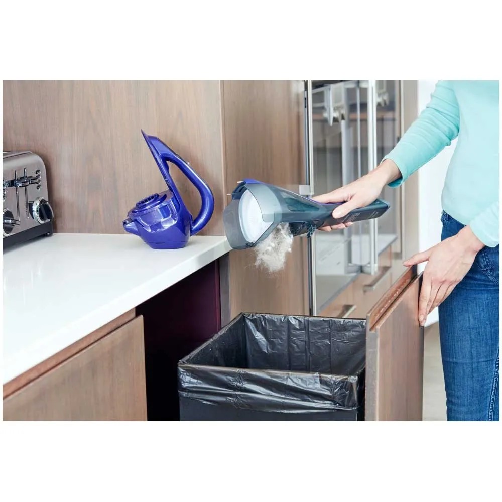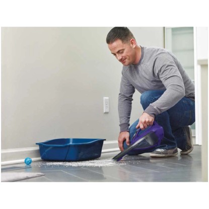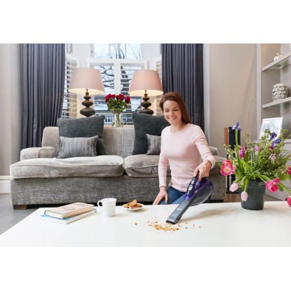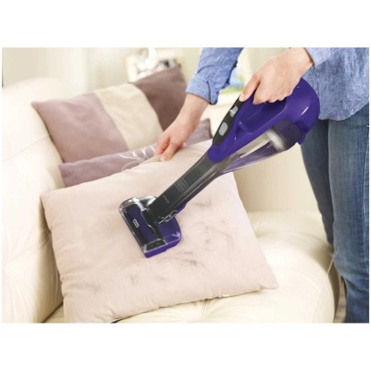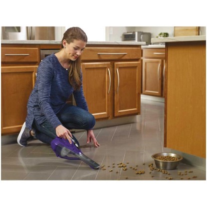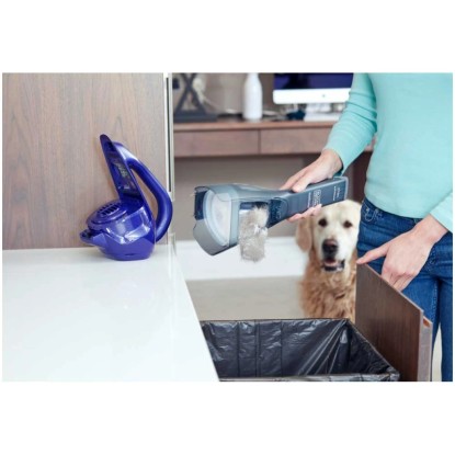 Der Black+Decker Akku-Handstaubsauger Dustbuster DVA325JP07 Titanium-Violett 10,8 V / 2,5 Ah / 27 Wh eignet sich ganz besonders für das Entfernen von Tierhaaren. Der ergonomische Griff, das einfache Entleerungssystem und die transparente Schüssel mit einem Fassungsvermögen von 500 ml ermöglichen einen schnellen und einfachen täglichen Gebrauch. Der Ladevorgang erfolgt an der Basis.