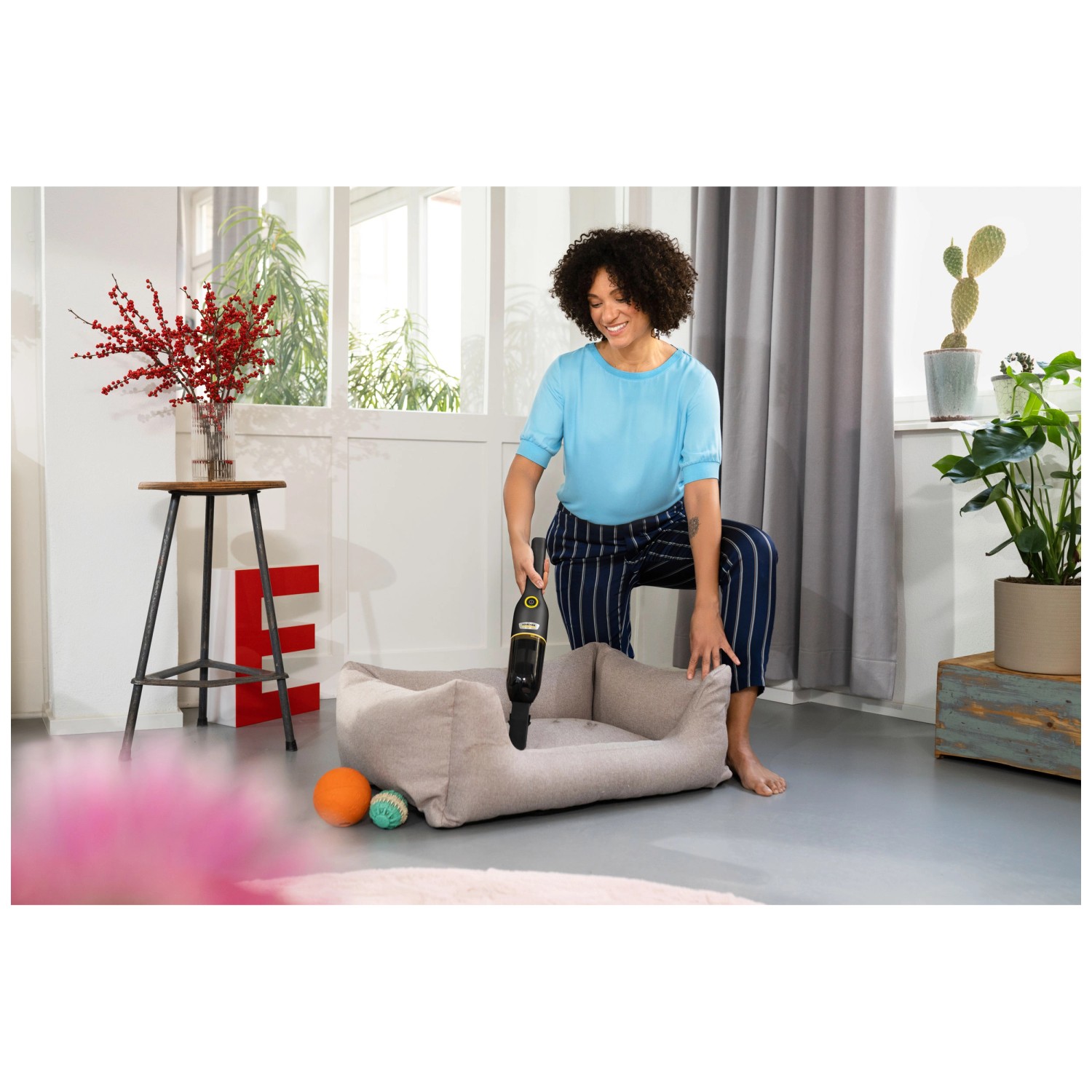 Der Kärcher Akku-Handstaubsauger CVH Anniversary Edition ist eine limitierte Sonderedition mit besonderer Farb- und Zubehörausstattung anlässlich des 90-jährigen Firmenjubiläums. Mit seinem leistungsstarken BLDC-Motor entfernt er effektiv Haare, Krümel und Staub von jeder Oberfläche und ist so ein vielseitiger Helfer für den Alltag. Das zweistufige Filtersystem mit HEPA-Filter sorgt für saubere Abluft. Der Sauger bietet zwei Saugstufen mit bis zu 20 Minuten Akkulaufzeit. Dank der USB-C-Lademöglichkeit und der kompakten und leichten Bauweise ist er ideal für den Einsatz im Auto oder beim Camping.