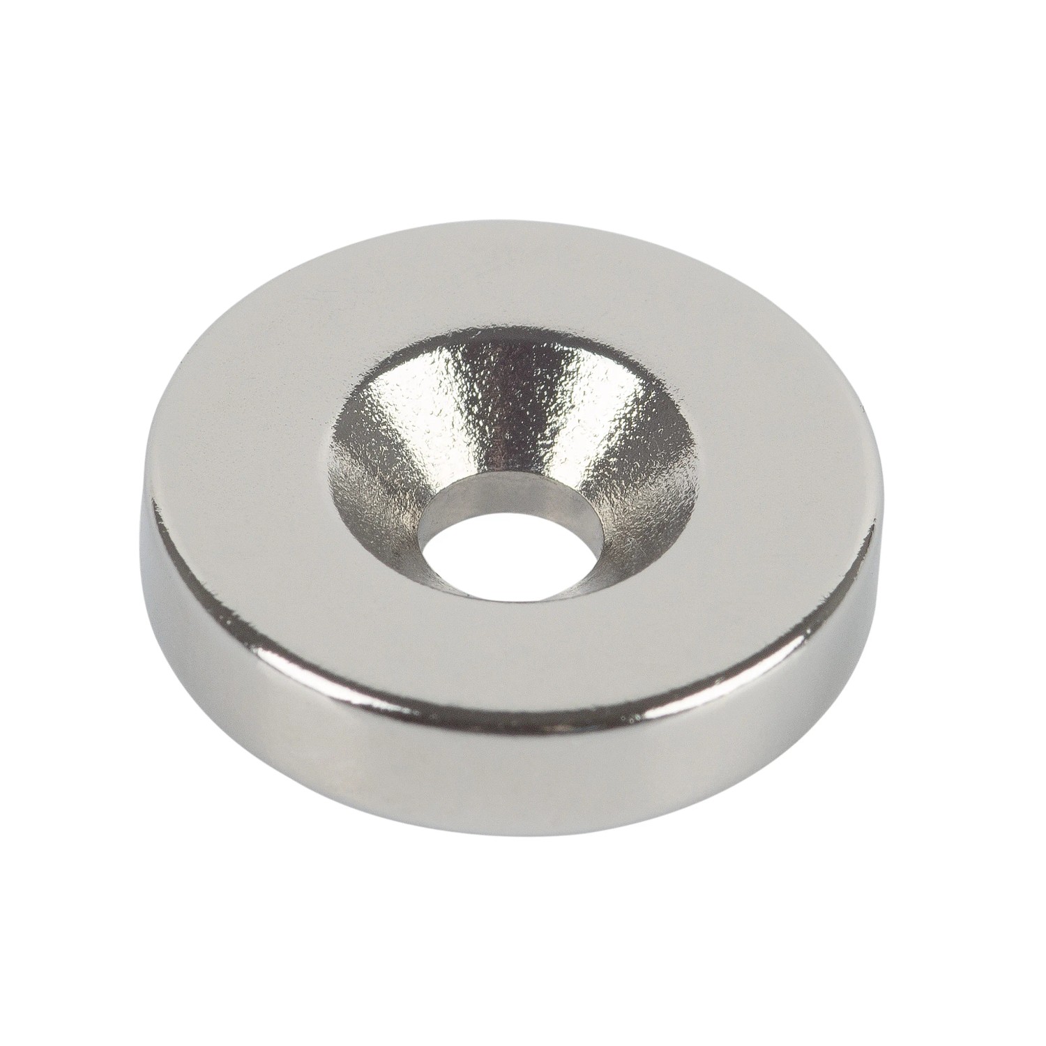 Der Fix-o-moll Neodym-Magnet mit Senkbohrung und -quader bietet eine grosse Haftkraft. Die Senkbohrung ermöglicht das Anschrauben der Magnete auf nicht-metallischen Untergründen.