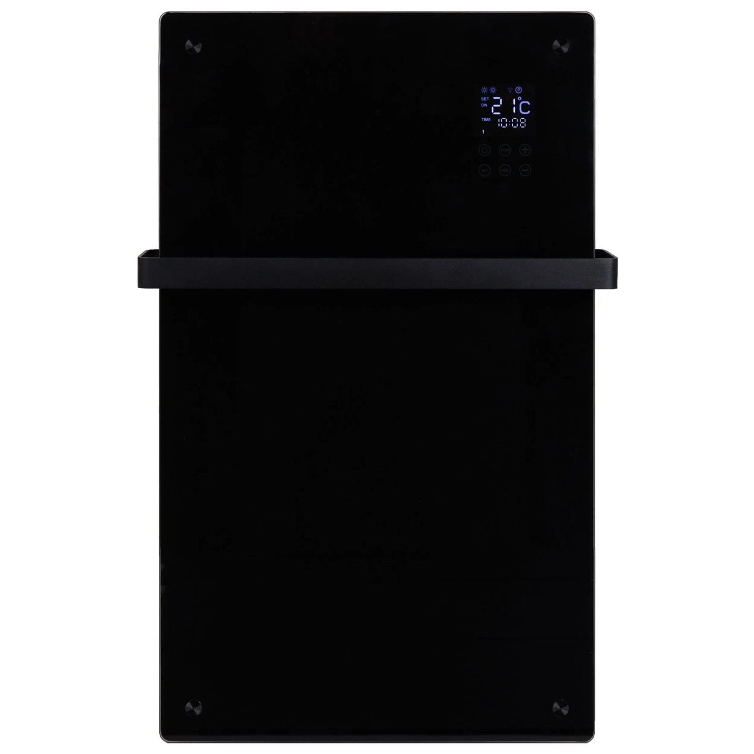 Der Eurom Alutherm Sani Verre 1'200 W ist ein eleganter Badheizkörper mit Glasfront und integriertem Handtuchhalter, der für angenehme Wärme im Badezimmer sorgt. Die Steuerung erfolgt über ein integriertes Display, eine Fernbedienung oder die Eurom Smart App. Der Heizkörper bietet zudem einen Thermostat, Umkippschutz und Überhitzungsschutz.