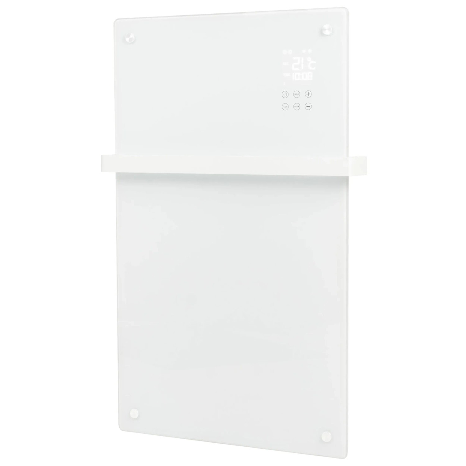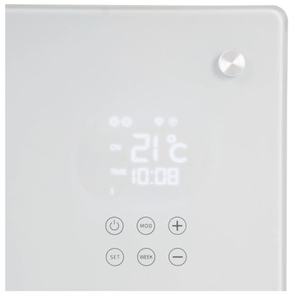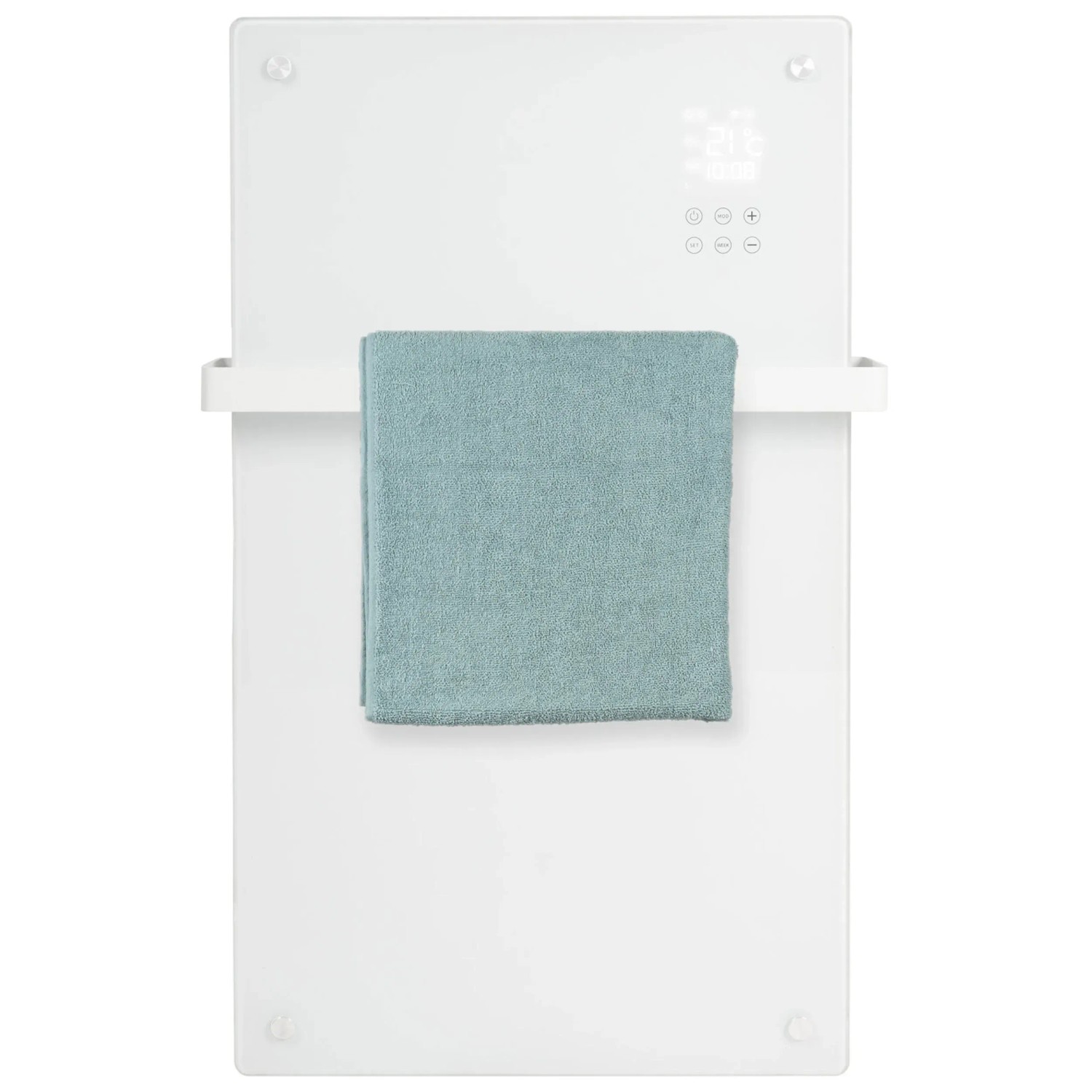 Der Eurom Alutherm Sani Verre 1'200 W ist ein eleganter Badheizkörper mit Glasfront und integriertem Handtuchhalter, der für angenehme Wärme im Badezimmer sorgt. Die Steuerung erfolgt über ein integriertes Display, eine Fernbedienung oder die Eurom Smart App. Der Heizkörper bietet zudem einen Thermostat, Umkippschutz und Überhitzungsschutz.