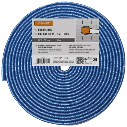 Der Climapor Rohrschutz PE verhindert die Korrosion von Kaltwasserleitungen und schützt das Leitungssystem vor Schwitzwasser. Ausserdem ist er schalldämmend und schützt Rohrleitungen vor mechanischen Beschädigungen. Gerade bei exponierten Leitungen in der Nähe von Türen oder beweglichen Teilen ist der Rohrschutz von Climapor dank seines robusten Materials perfekt geeignet. Er kann bei Rohrtemperaturen von -40 °C bis +100 °C eingesetzt werden. Der Rohrschutz ist 10 Meter lang und für Rohre mit einem Durchmesser von 12 bis 15 mm geeignet.