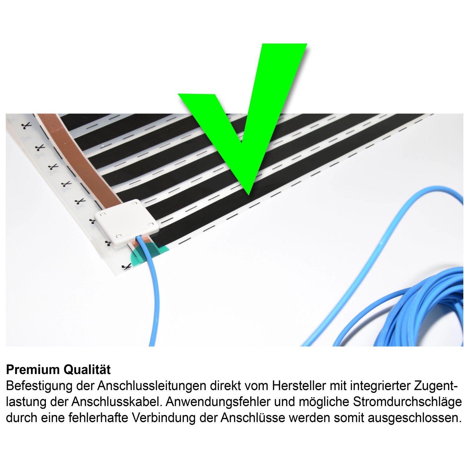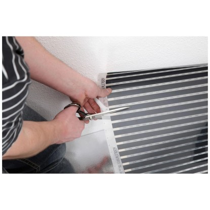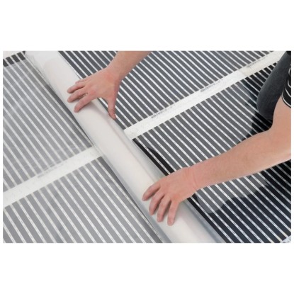Die elektrische Temperierungsfolie hat eine Grösse von 2,5 x 0,6 m (= 1,5 m²), 120 W und ist für Parkett- und Laminatböden zum Anschluss an das vorhandene Stromnetz geeignet. Die Heizfolie besitzt eine geringe Aufbauhöhe von 0,4 mm.