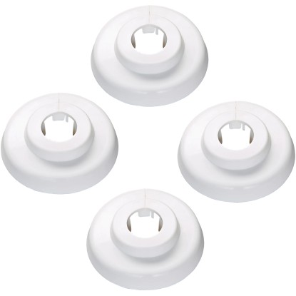 Mit der Scharnierrosette bekommen die Rohre am Heizkörper einen stilvoll optischen Abschluss, indem Ventilanschlüsse oder Muttern verdeckt werden. Damit verleihen Sie der Heizung ein ansprechendes und homogenes Äusseres. Mit ihrer genormten Grösse und der stabilen Form gewährleisten sie zudem einen festen Sitz: Sie besitzen einen Innendurchmesser von 12 mm (G 1/8") und einen Aussendurchmesser von 40 mm, während die Höhe 11 mm beträgt. Für die Fertigung wird hochwertiger Kunststoff in weisser Farbe verwendet. Zur Montage wird sie ganz einfach bei der Installation oder nachträglich über das entsprechende Anschlussrohr und anschliessend auf die Verbindungsstelle geschoben. Ausgestattet ist das Zubehörteil mit variablen Haltelitzen, die wie Zähne ein mögliches Verrutschen verhindern. Im Lieferumfang sind vier Stück enthalten.